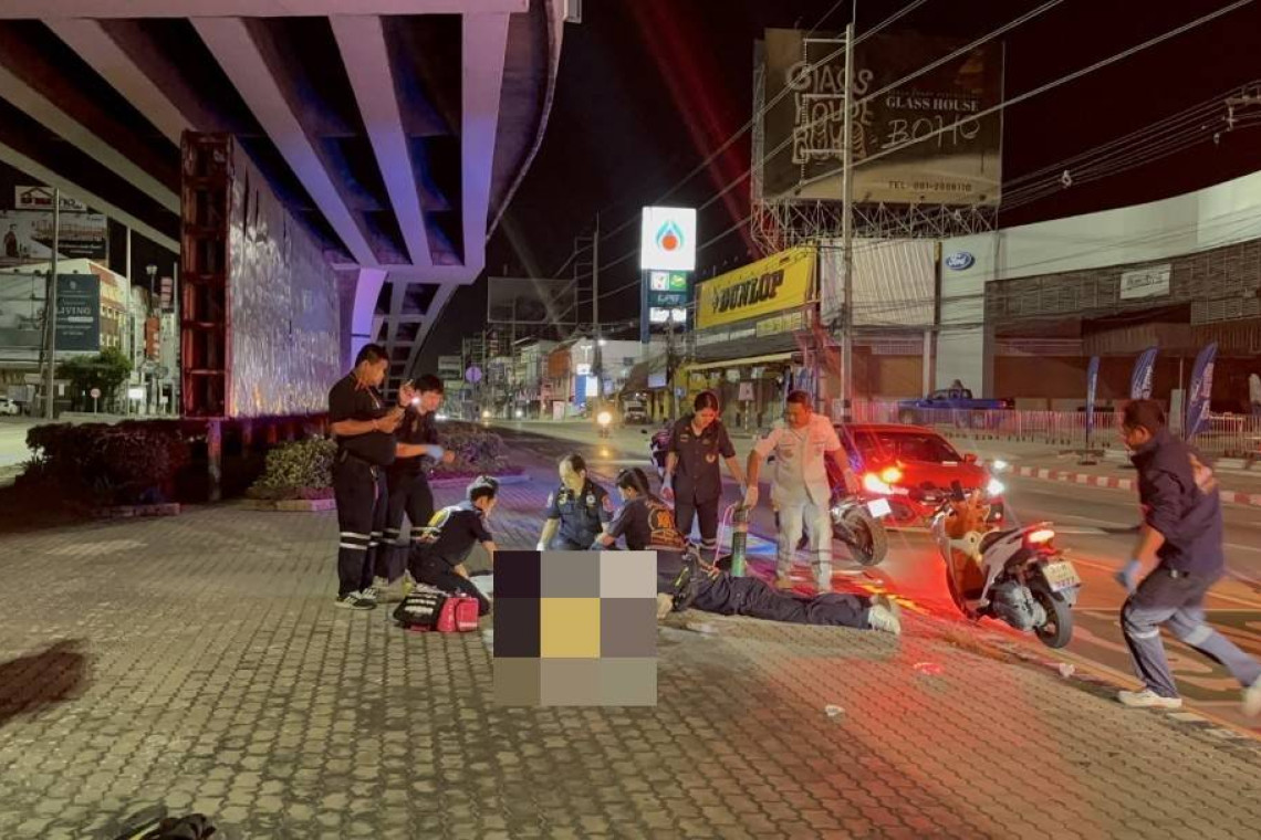 ที่เกิดเหตุพบรถจักรยานยนต์ย ยามาฮ่า แกรนด์ ฟีร่าโน่ สีแดง ทะเบียน 4 กอ xxxx ชลบุรี เสียหลักหลุดโค้งพุ่งชนราวสะพาน ได้รับความเสียยับเยิน ด้านล่างสะพานความสูงประมาณ 5 เมตร พบร่างนายธีรพงษ์ อายุ 37 ปี ชาวจังหวัดสุโขทัย มีบาดแผลฉีกขาดที่หน้าท้องแขนขาทั้งสองข้างหักผิดรูป ได้รับบาดเจ็บสาหัส เจ้าหน้าที่กู้ภัยฯ และทีมแพทย์ให้การช่วยเหลือปฐมพยาบาลเบื้องต้น ปั๊มหัวใจเพื่อยื้อชีวิต แต่ผู้บาดเจ็บอาการสาหัสทนพิษบาดแผลไม่ไหวเสียชีวิตในเวลาต่อมา