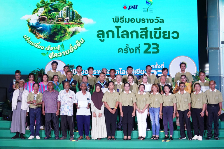 ในปี 2568 ปตท. ได้จัดพิธีมอบรางวัลลูกโลกสีเขียว ครั้งที่ 23 ขึ้นภายใต้แนวคิด “ปรับเปลี่ยน เรียนรู้ สู่ความยั่งยืน” จากสภาพภูมิอากาศที่เปลี่ยนแปลงอย่างรวดเร็วและรุนแรงขึ้นส่งผลกระทบต่อชุมชนต่าง ๆ ทั่วประเทศ ไม่เว้นแม้กระทั่งชุมชนที่เคยได้รับรางวัลลูกโลกสีเขียว ซึ่งมีความเข้มแข็งทั้งจากภายใน และมีพันธมิตรภายนอกที่แข็งแกร่งการ “ปรับเปลี่ยน” วิธีคิด วิถีชีวิต “เรียนรู้” และเปิดรับองค์ความรู้ที่หลากหลาย ผสมผสานทั้งวิทยาศาสตร์และภูมิปัญญาท้องถิ่น จะสนับสนุนให้ชุมชนสามารถจัดการทรัพยากรธรรมชาติซึ่งเป็นสิ่งสำคัญต่อชีวิตได้อย่าง “ยั่งยืน” โดยได้รับเกียรติจาก ดร.สุเมธ ตันติเวชกุล ประธานกรรมการสถาบันลูกโลกสีเขียว มอบรางวัลลูกโลกสีเขียวให้แก่ชุมชน หรือบุคคลที่มีผลงานโดดเด่นด้านการอนุรักษ์ทรัพยากรธรรมชาติและสิ่งแวดล้อม พร้อมด้วย นายวุฒิกร สติฐิต ประธานเจ้าหน้าที่ปฎิบัติการกลุ่มธุรกิจปิโตรเลียมขั้นต้นและก๊าซธรรมชาติ บริษัท ปตท. จำกัด (มหาชน) (ปตท.) คณะกรรมการรางวัลลูกโลกสีเขียว และเครือข่ายลูกโลกสีเขียวทั่วประเทศ ร่วมแสดงความยินดีกับผู้ได้รับรางวัลลูกโลกสีเขียว ครั้งที่ 23 ณ อาคาร ปตท. สำนักงานใหญ่