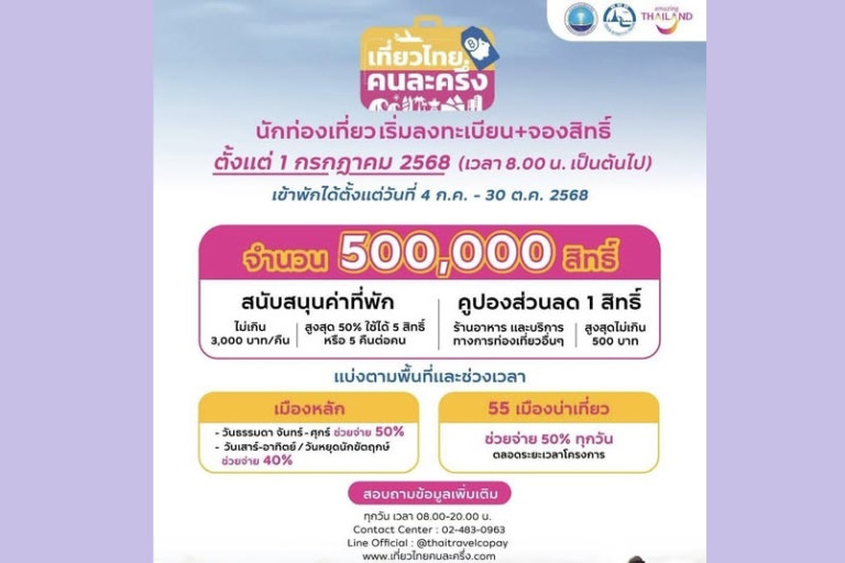1 กรกฎาคม 2568 10:58 น. สยามรัฐออนไลน์ ท่องเที่ยว วันที่ 1 ก.ค.68 ผู้สื่อข่าวรายงาน ว่า ได้มีการรวบรวมรายชื่อโรงแรมที่เข้าร่วมโครงการเที่ยวไทยคนละครึ่ง เพื่อให้ผู้ที่ลงทะเบียนใช้สิทธิ์สามารถเลือกได้อย่างสะดวก โดยรายชื่อ จะทยอยอัปเดตอย่างต่อเนื่อง เพราะหลายโรงแรมระบบยังไม่เข้าที่อาจจะยังไม่พร้อม
