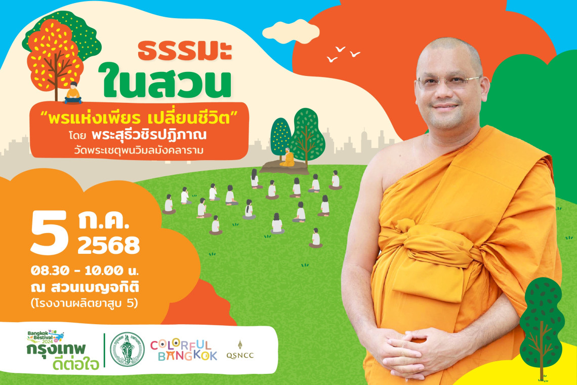 “ความเพียร ไม่ใช่แค่ความขยัน หากแต่คือ ‘พลังใจ’ ที่ฝึกจนกลายเป็นเกราะปกป้องเรา เดินผ่านทุกอุปสรรค ฝ่าความกลัว สร้างจิตให้มั่นคง มุ่งสู่ปัญญาและชัยชนะในชีวิต ศูนย์ฯสิริกิติ ชวนมาร่วมหาคำตอบว่า ‘ความเพียร’ เปลี่ยนชีวิตเราได้จริงหรือ? และเติมเต็มพลังใจด้วยความเพียร กับในกิจกรรมธรรมะในสวน หัวข้อ ‘พรแห่งเพียร เปลี่ยนชีวิต’ โดย พระสุธีวชิรปฏิภาณ (พระมหาวีรพล วีรญาโณ) วัดพระเชตุพนวิมลมังคลาราม ในเช้าวันเสาร์ที่ 5 กรกฎาคม 2568 เวลา 8.30-10.00 น. ณ อาคารโรงงานผลิตยาสูบ 5 สวนเบญจกิติ