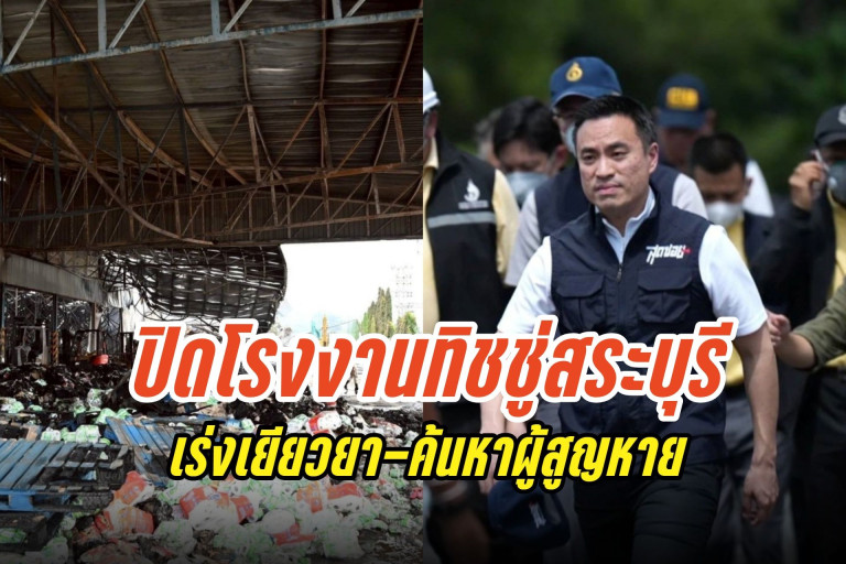 "เอกนัฏ" ห่วงไฟไหม้โรงงานทิชชู่ จ.สระบุรี ส่ง “สุดซอย” ลงพื้นที่ร่วมตรวจสอบ สั่งปิดโรงงาน จี้หาสาเหตุเพลิงไหม้ เร่งการเยียวยาผู้บาดเจ็บ-ผู้เสียชีวิต และค้นหาผู้สูญหาย ย้ำดูแลผลกระทบกับชุมชนและประชาชน