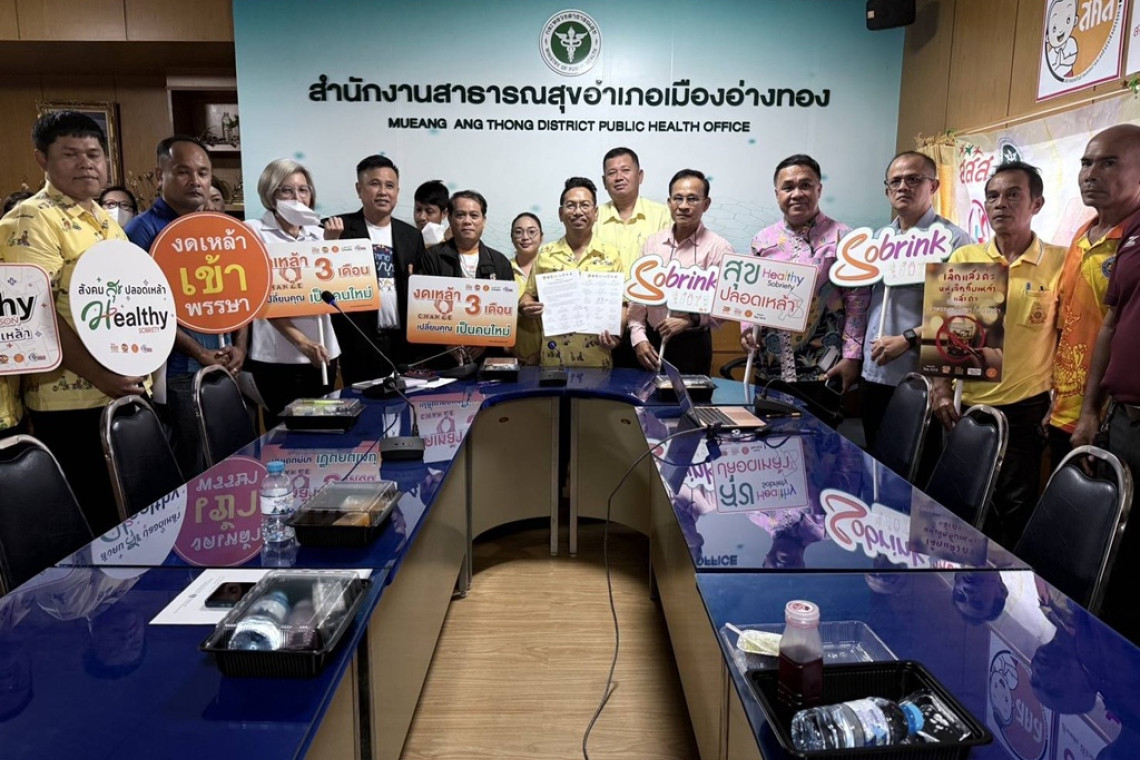สาธารณสุขอำเภอเมืองอ่างทอง ทำ บันทึกข้อตกลง MOU ความร่วมมือรณรงค์และขับเคลื่อนงานลดปัจจัยเสี่ยงเหล้าเครื่องดื่มที่มีแอลกอฮอล์บุหรี่ บุหรี่ไฟฟ้า