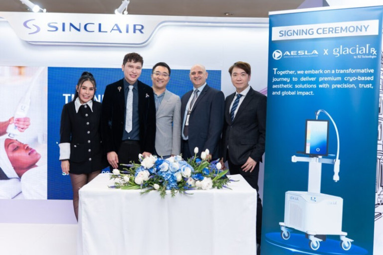 สำหรับพิธีลงนามครั้งนี้จัดขึ้นภายในงานประชุมวิชาการระดับนานาชาติ IMCAS Asia 2025 ณ โรงแรม ดิ แอทธินี โฮเทล, อะ ลักซ์ชูรี คอลเลกชั่น โฮเทล กรุงเทพ โดยได้รับเกียรติจาก มร.สก็อตต์ เกา (Mr.Scott Gao) ผู้บริหารช่องทางการจัดจำหน่ายในภูมิภาคเอเชียแปซิฟิก จาก บริษัท เรียล ทรู (เซี่ยงไฮ้) ไบโอเทคโนโลยี จำกัด (Real True (Shanghai) Biotechnology) ซึ่งเป็นพันธมิตรระดับภูมิภาคของ R2 Technologies ร่วมลงนามในฐานะตัวแทน Glacial® Rx อย่างเป็นทางการ ร่วมด้วย คุณวรุตม์ สุทธินันท์ ผู้บริหารจากเอสล่า, คุณปกรณ์ เมธาธราธิป, คุณจุรีพร แสนเมือง และ Mr.Søren Maor Sinay