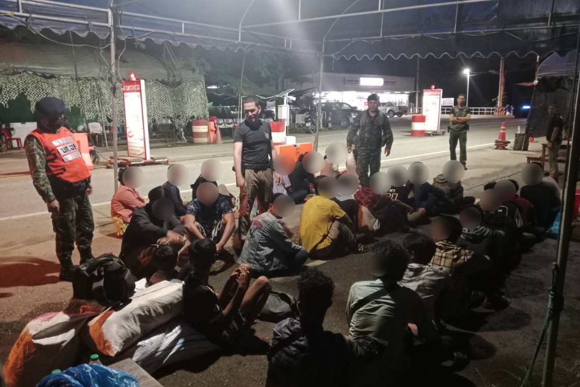 กระทั่งเวลา 01.00 น. ขณะที่เจ้าหน้าที่ปฏิบัติงาน บริเวณ จุดตรวจร่วมสามแยกทองผาภูมิ สังเกตพบรถยนต์ต้องสงสัยตามที่ได้รับแจ้งจากแหล่งข่าว ขับมาจาก อ.สังขละบุรี มุ่งหน้า อ.ทองผาภูมิ จึงได้ให้สัญญาณหยุดรถเพื่อทำการตรวจสอบ แต่ในขณะที่เจ้าหน้าที่กำลังจะเข้าทำการตรวจสอบนั้น รถยนต์คันดังกล่าวได้ทำการเร่งเครื่องยนต์หลบหนีออกไปจากด่านตรวจ เจ้าหน้าที่จึงได้เร่งติดตามไปจนกระทั่งพบรถยนต์กระบะ หมายเลขทะเบียน 2ฒผ xxxx กรุงเทพมหานคร จอดทิ้งไว้บริเวณริมถนน บ.สหกรณ์นิคม ม.1 ต.สหกรณ์นิคม อ.ทองผาภูมิ จากนั้นเจ้าหน้าที่ฝ่ายความมั่นคงจึงได้ทำการตรวจสอบภายในรถยนต์คันดังกล่าวอย่างละเอียด พบ กลุ่มบุคคลคล้ายต่างด้าวผิดกฎหมาย จำนวน 27 คน (ชาย 19 คน และหญิง 8 คน) ต่อมาเจ้าหน้าที่ได้ดำเนินการตรวจสอบเอกสารประจำตัวที่ทางราชการออกให้ แต่กลุ่มบุคคลดังกล่าวไม่สามารถสื่อสารภาษาไทยได้ และไม่สามารถแสดงเอกสารที่ทางราชการออกให้ได้ จึงควบคุมตัวกลุ่มบุคคลต่างด้าวไว้ทั้งหมด
