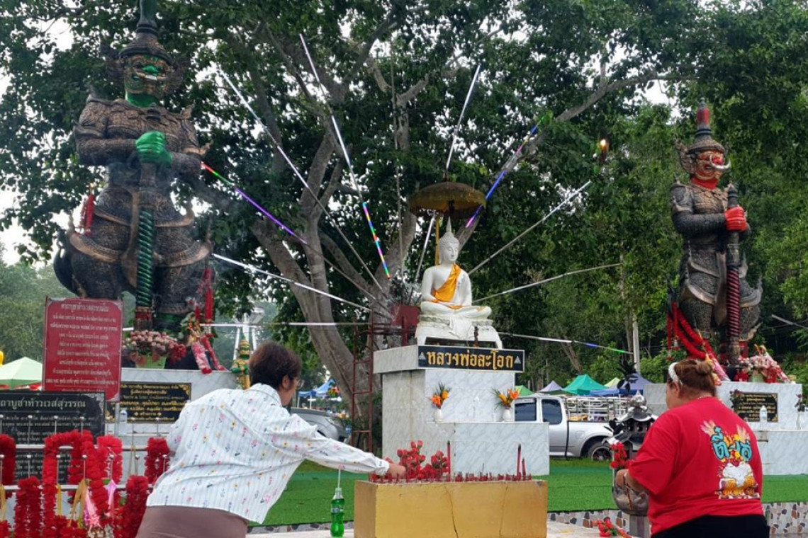 ขณะเดียวกัน นางตุ้ม อายุ 69 ปี ชาว จ.ระยอง ก็ไม่ยอมน้อยหน้า เล่าว่าตนเองก็เคยมาขอพรเรื่องการขายที่ดินในพื้นที่ชุมชนคลองแดง ต.พะว้า อ.แก่งหางแมว จ.จันทบุรี จำนวน 6 ไร่ ปรากฏว่าไม่นานก็ขายได้ในราคาดีถึงไร่ละ 860,000 บาท รับเงินมากกว่า 5 ล้านบาท จึงจัดหนังกลางแปลงมาฉายแก้บนในวันนี้เช่นกัน