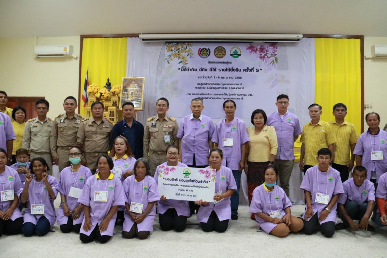 วันที่ 7 กรกฎาคม 2568 ที่ วิสาหกิจชุมชนผึ้งหลวงเกษตรไทยไปตลาดโลก ต.คำอาฮวน อ.เมืองมุกดาหาร จ.มุกดาหาร พล.ต.อ.เฉลิมเกียรติ ศรีวรขาน ประธานบอร์คธนาคารที่ดิน เป็นประธานการเปิดการฝึกอบรมหลักสูตร "มีที่ทำกิน มีกิน มีใช้ รายได้ยั่งยืน ครั้งที่ 5 และมอบสิทธิมอบสุขที่ดินให้เกษตรกร “โดยมีผู้เข้าร่วมอบรมและได้สิทธิที่ดิน 2 วสช. มี วิสาหกิจชุมชนไร่นาสวนผสมแบบยั่งยืนบ้านดงช้าง ต.โนนสง่า อ.ปทุมรัตต์ จ.ร้อยเอ็ด จำนวน 32 ราย เนื้อที่ 112-1-6.30 ไร่ และวิสาหกิจชุมชนผึ้งหลวงเกษตรไทยไปตลาดโลก ต.คำอาฮวน อ.เมืองมุกดาหาร จ.มุกดาหาร จำนวน 20 ราย เนื้อที่ 48-2-28.10ไร่ และได้กำหนดแนวทางการบริหารจัดการที่ดินให้สมาชิกอยู่ได้ด้วยตนเองอย่างยั่งยืน