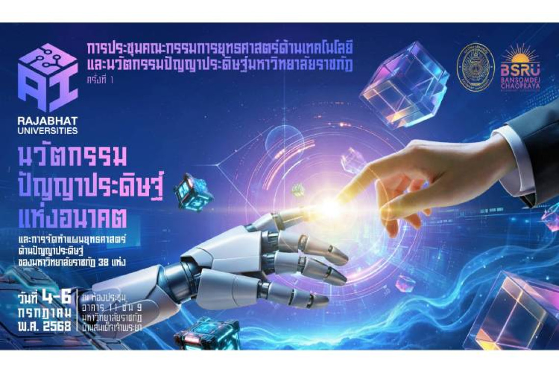 เป็นสถาบันเจ้าภาพจัดงาน “โครงการอบรมเชิงปฏิบัติการ เรื่อง นวัตกรรมปัญญาประดิษฐ์แห่งอนาคต และการจัดทำแผนยุทธศาสตร์ด้านปัญญาประดิษฐ์ของมหาวิทยาลัยราชภัฏ 38 แห่ง ระหว่างวันที่ 4 - 6 กรกฎาคม 2568 ตามมติของที่ประชุมอธิการบดีมหาวิทยาลัยราชภัฏ เพื่อเป็นกลไกในการกำหนดทิศทาง เชื่อมโยงการดำเนินงาน และขับเคลื่อนยุทธศาสตร์ด้านปัญญาประดิษฐ์ให้เกิดผลอย่างเป็นรูปธรรมในระดับเครือข่ายและตอบสนองต่อบทบาทของมหาวิทยาลัยราชภัฏในการพัฒนาท้องถิ่นได้อย่างยั่งยืน โดยมีเป้าหมายของการจัดงาน เพื่อสร้างเครือข่ายมหาวิทยาลัยราชภัฏทั่วประเทศ พร้อมจัดทำชุดโครงการต้นแบบ 5 ด้านหลัก ได้แก่ 1) ด้านวิชาการ 2) ด้านการบริหารจัดการ 3) ด้านการวิจัยและนวัตกรรม 4) ด้านศิลปวัฒนธรรม 5) ด้านบริการวิชาการ ภายใต้แผนยุทธศาสตร์ด้านเทคโนโลยีและนวัตกรรมปัญญาประดิษฐ์ ซึ่งจะใช้เป็นต้นแบบในการขับเคลื่อนภายใต้กรอบยุทธศาสตร์ร่วมกันอย่างสอดคล้องต่อการเปลี่ยนแปลงของโลกยุคดิจิทัลที่ขับเคลื่อนด้วยข้อมูลและเทคโนโลยีปัญญาประดิษฐ์ พร้อมเป็นเครื่องมือในการสร้างนวัตกรรมที่ตอบโจทย์พื้นที่ ยกระดับคุณภาพชีวิตของประชาชน และสร้างโอกาสใหม่ทางเศรษฐกิจและสังคม อันจะนำไปสู่การพัฒนาท้องถิ่นอย่างเป็นระบบที่แท้จริง
