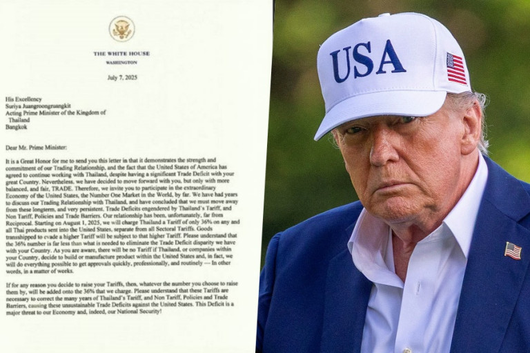 ประธานาธิบดีโดนัลด์ ทรัมป์ ผู้นำสหรัฐฯ ได้ส่งจดหมายถึงประเทศไทย เพื่อแจ้งรายละเอียดเกี่ยวกับมาตรการภาษีศุลกากร ซึ่งรวมถึงการเก็บภาษีนำเข้าสินค้าไทยในอัตรา 36% มีผลตั้งแต่วันที่ 1 สิงหาคม 2568 เป็นต้นไป พร้อมระบุด้วยว่า อัตราภาษีที่ 36% นี้ยังน้อยกว่าที่จำเป็นในการขจัดความไม่สมดุลทางการค้าทั้งหมดกับไทย อย่างไรก็ดี ปธน.ทรัมป์ยังเปิดทางว่า สหรัฐฯ จะไม่เรียกเก็บภาษีหากบริษัทไทยเข้ามาลงทุนตั้งฐานการผลิตในสหรัฐอเมริกา และแสดงความคาดหวังว่าประเทศไทยจะเปิดตลาดการค้าให้แก่สหรัฐฯ มากขึ้น เพื่อนำไปสู่ความสัมพันธ์ทางการค้าที่สมดุลและเป็นธรรมกว่าเดิม
