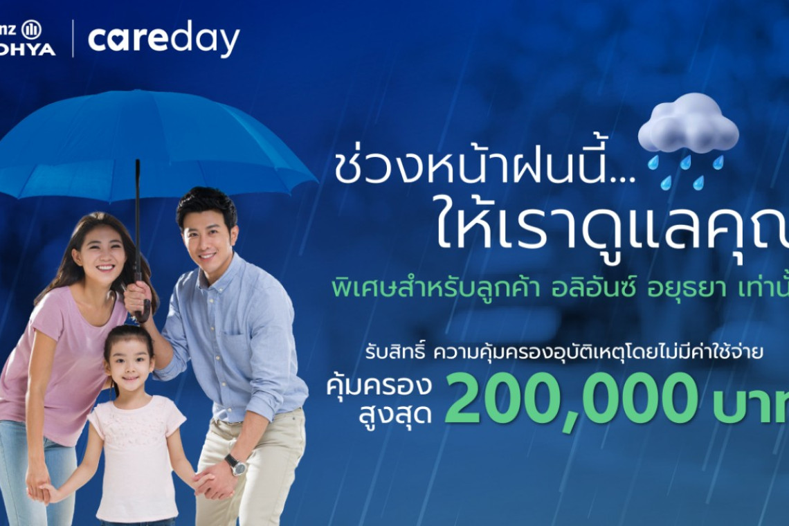 อลิอันซ์ อยุธยา ส่งความห่วงใยช่วงหน้าฝน มอบความคุ้มครองอุบัติเหตุโดยไม่มีค่าใช้จ่าย คุ้มครองสูงสุด 200,000 บาท