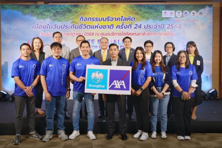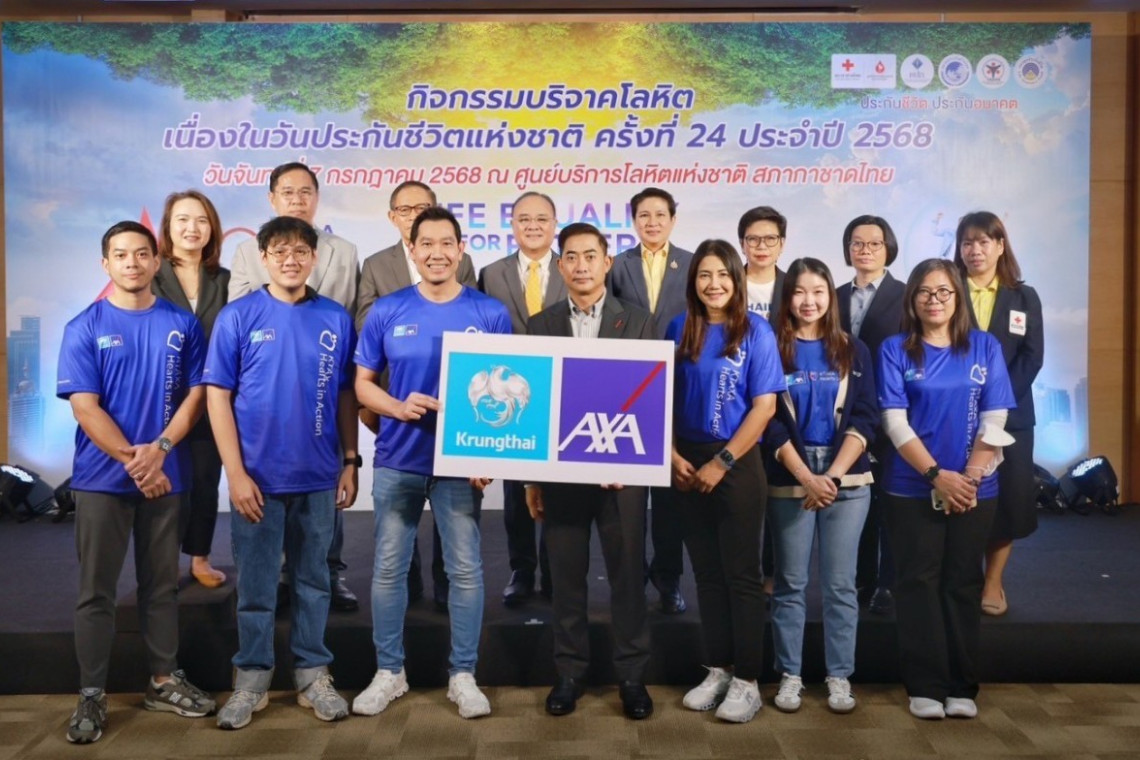 บมจ.กรุงไทย-แอกซ่า ประกันชีวิต นำโดย คุณกฤช ธีรสุข ประธานเจ้าหน้าที่บริหาร ฝ่ายตัวแทน (คนที่ 4 จากซ้ายแถวหน้า) พร้อมด้วยพนักงานและฝ่ายขายจิตอาสา เข้าร่วมบริจาคโลหิต เนื่องในวันประกันชีวิตแห่งชาติ ครั้งที่ 24 ประจำปี 2568 ณ สภากาชาดไทย ถนนอังรีดูนังต์ โดยกิจกรรมดังกล่าวเป็นความร่วมมือของสำนักงานคณะกรรมการกำกับและส่งเสริมการประกอบธุรกิจประกันภัย (คปภ.) สมาคมประกันชีวิตไทย สมาคมตัวแทนประกันชีวิตและที่ปรึกษาการเงิน พร้อมด้วยบริษัทประกันชีวิต 18 บริษัทชั้นนำ ซึ่งเป็นการจัดขึ้นเพื่อเป็นการแสดงความสามัคคีในร่วมกันแบ่งปันเพื่อสังคม และได้ช่วยเหลือผู้ป่วยทั่วประเทศ ที่สอดคล้องกับนโยบายหลักของบริษัทฯ ที่จะอยู่เคียงข้างทุกความเชื่อมั่นดูแลกันตลอดไป