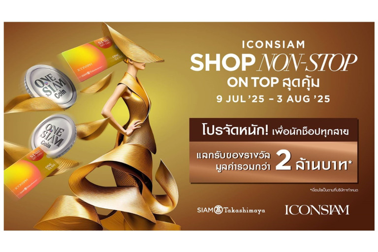 ไอคอนสยาม แลนด์มาร์กระดับโลกริมแม่น้ำเจ้าพระยา จัดโปรแรงกลางปี กระตุ้นกำลังซื้อปะทะหน้าฝน ด้วยแคมเปญ “ICONSIAM SHOP NON-STOP ON TOP สุดคุ้ม” เอาใจสมาชิก ONESIAM ยิ่งช็อป ยิ่งได้ แลกรับทั้ง SIAM GIFT CARD และ ONESIAM Coin รวมมูลค่ากว่า 2 ล้านบาท สมาชิก ONESIAM เพียงรวบรวมใบเสร็จจากการซื้อสินค้าและบริการต่างๆจากร้านค้าที่ร่วมรายการภายในไอคอนสยาม รวมสยาม ทาคาชิมายะ ตามยอดที่กำหนด (ไม่รวมยอดใช้จ่ายผ่านออนไลน์ และคำนวณจากยอดสุทธิหลังหักส่วนลดต่างๆแล้ว) แลกรับของรางวัลได้ทันที (สิทธิ์มีจำนวนจำกัด)
