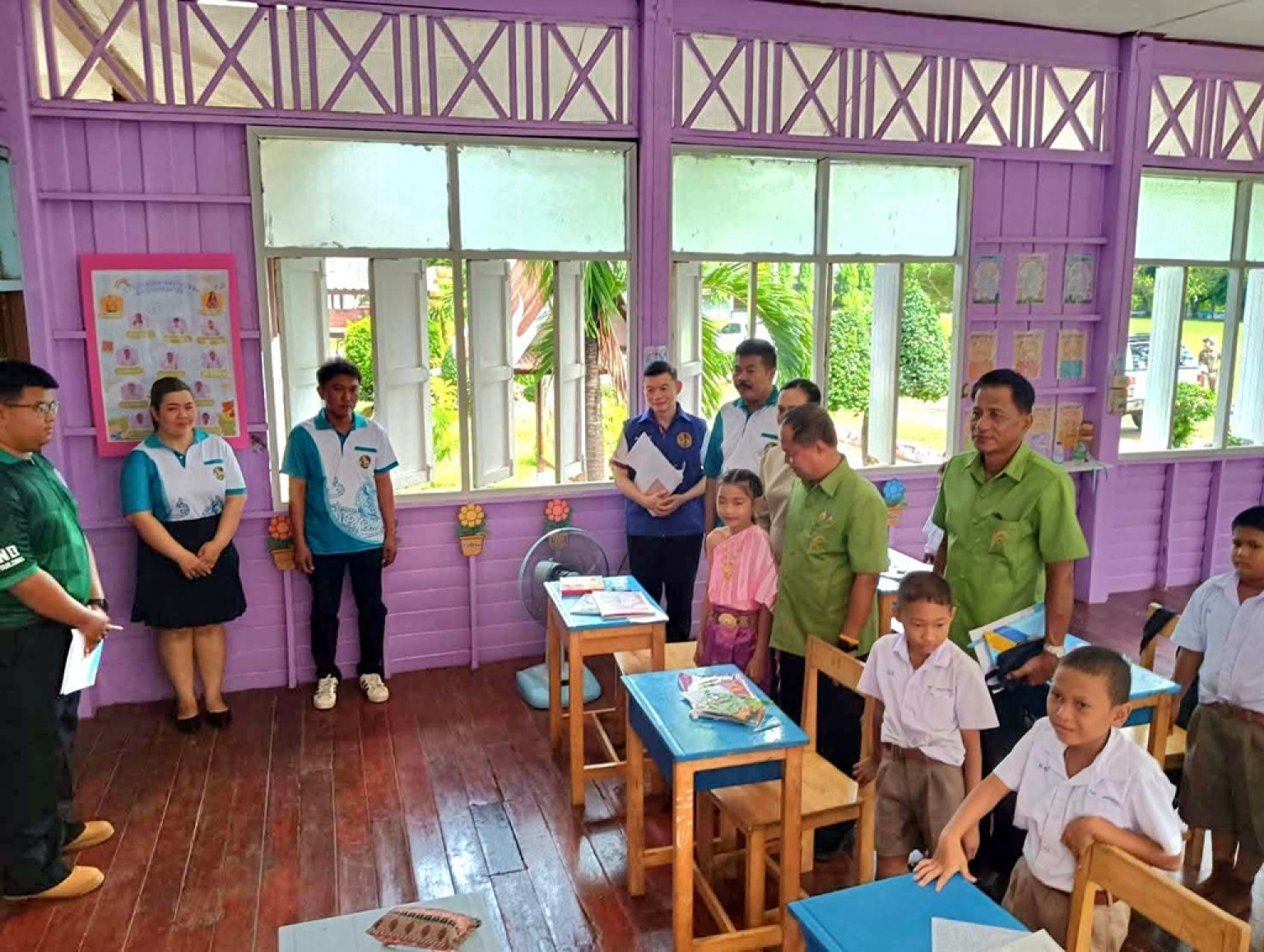 วันที่ 9 ก.ค.68 ณ พื้นที่อำเภอสามโก้ จังหวัดอ่างทอง นายไพบูลย์ ศุภบุญ รองผู้ว่าราชการจังหวัดอ่างทอง/หัวหน้าคณะ พร้อมด้วยคณะตรวจเยี่ยมสถานศึกษาในพื้นที่จังหวัดอ่างทอง ประจำปี พ.ศ. 2568 (ชุดที่ 9) ประกอบด้วย สวัสดิการและคุ้มครองแรงงานจังหวัดอ่างทอง/ผู้รับผิดชอบหลักคณะตรวจเยี่ยม อุตสาหกรรมจังหวัดอ่างทองแขวงทางหลวงชนบทอ่างทอง ผู้อำนวยการสำนักงาน คปภ.จ.อ่างทอง นายอำเภอสามโก้ และเจ้าหน้าที่ที่เกี่ยวข้อง ร่วมตรวจลงพื้นที่ตรวจเยี่ยมสถานศึกษาในพื้นที่อำเภอสามโก้ จำนวน 4 แห่ง ประกอบด้วย โรงเรียนวัดหนองกร่าง ตำบลราษฎรพัฒนา โรงเรียนวัดมงคลธรรมนิมิต ตำบลมงคลธรรมนิมิต โรงเรียนบ้านหนองถ้ำ ตำบลมงคลธรรมนิมิต และ โรงเรียนวัดสามโก้ ตำบลสามโก้ โดยมีผู้บริหารสถานศึกษา พร้อมคณะกรรมการฯ นายกเทศบาลตำบลสามโก้ กำนัน ผู้ใหญ่บ้านในพื้นที่ให้การต้อนรับ ผลการตรวจเยี่ยมเป็นไปด้วยความเรียบร้อย
