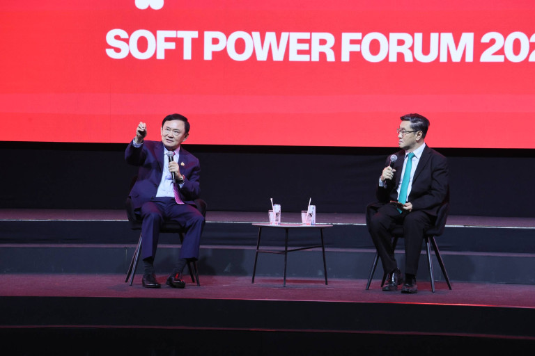 นายทักษิณ กล่าวถึง อนาคตซอฟต์พาวเวอร์ของไทย จะขับเคลื่อนอย่างไร และจะขับเคลื่อนเศรษฐกิจไทยได้จริงหรือไม่ว่า ก่อนอื่นปัญหาใหญ่ของประเทศนั่นคือความไม่สามัคคี มีความอิจฉาริษยา ถ้าเราอยู่ด้วยความสามัคคี ไม่อิจฉาริษยา เกื้อกูลกันซอฟต์พาวเวอร์จะมีพลังมหาศาล ถ้าคนไทยมีสิ่งเหล่านี้เมื่อรวมกันแล้วจะสามารถสร้างพลังซอฟต์พาวเวอร์ได้หลากหลายสาขาหลากหลายช่องทาง นั่นคือช่องทางทำมาหากินทั้งนั้น แม้โลกจะมีเทคโนโลยีใหม่ ทันสมัยแค่ไหนก็หนีคำว่าซอฟต์พาวเวอร์ไม่ได้ ทุกอย่างต้องไม่ทิ้งแกนเดิม เรามีของดีอยู่แล้ว เรามีคนไทยซึ่งมีสายเลือดอยู่ในพวกนี้อยู่แล้ว ต้องเอามาใช้ให้เกิดประโยชน์ แต่สำคัญคือพอสร้างขึ้น พอคนนั้นเริ่มโต คนนี้มาอิจฉากัน ตรงนี้ต้องทิ้งๆไว้บ้าง เข้าวัดหน่อย