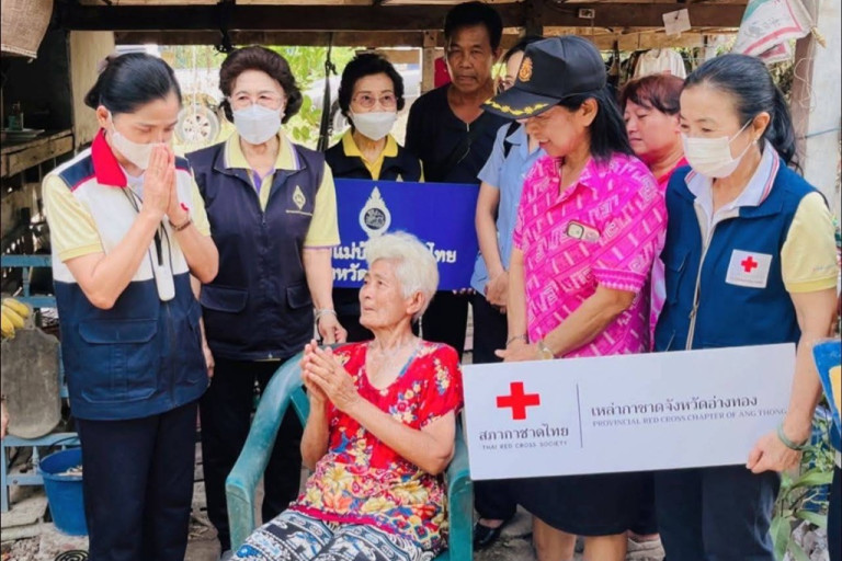 ทั้งนี้ เหล่ากาชาดจังหวัดอ่างทองได้มอบถุงยังชีพ ไข่ไก่ มุ้ง ผ้าขนหนู และเงินสงเคราะห์ เพื่อเป็นการพัฒนาคุณภาพชีวิตของผู้สูงอายุ ผู้ป่วยติดเตียง ผู้ด้อยโอกาส ผู้พิการ ที่มีฐานะยากจน และลดภาระค่าใช้จ่ายของครอบครัว
