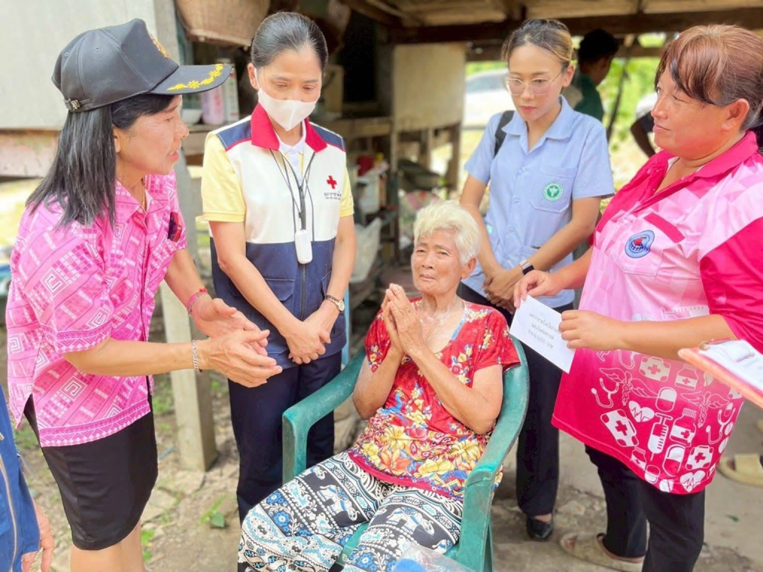 ลงพื้นที่ตามโครงการกาชาดพบปะเยี่ยมเยียนราษฎร ผู้สูงอายุ ผู้ป่วยติดเตียง ผู้ด้อยโอกาส ผู้พิการ ที่มีฐานะยากจน ประจำปีงบประมาณ พ.ศ. 2568 ในพื้นที่อำเภอไชโย ราย นางทองหล่อ ภิบาลพงษ์