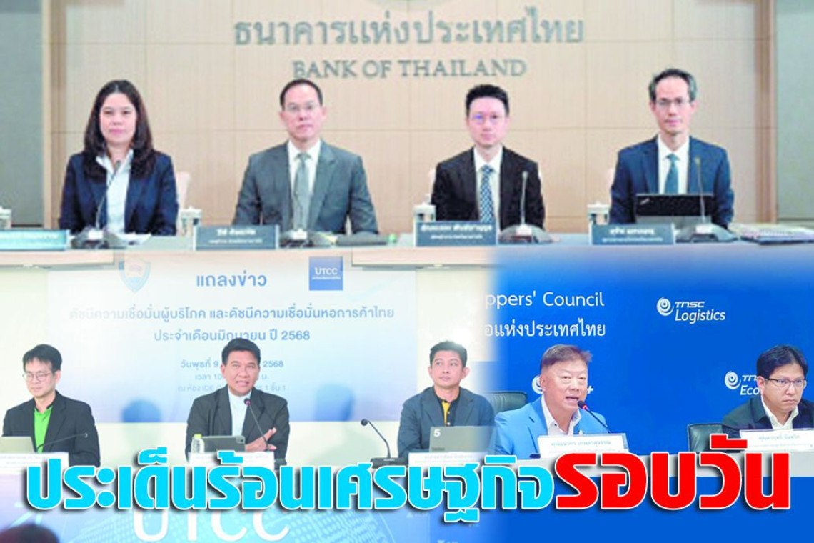 -ศูนย์พยากรณ์เศรษฐกิจและธุรกิจ ม.หอการค้าไทย เปิดเผยว่า ผลของการสำรวจความเชื่อมั่นของผู้บริโภคในเดือนมิถุนายน 2568 ดัชนีความเชื่อมั่นของผู้บริโภคปรับตัวลดลงทุกรายการต่อเนื่องเป็นเดือนที่ 5 และอยู่ในระดับที่ต่ำสุดในรอบ 28 เดือน เนื่องจากผู้บริโภคมีความกังวลเกี่ยวกับเสถียรภาพของรัฐบาลและการเมืองของไทยและสงครามการค้าจากนโยบายภาษีทรัมป์