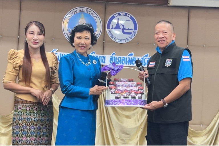 ดร.กัลยาณี นายกฯท่องเที่ยวศรีสะเกษ ต้อนรับนักท่องเที่ยว 10 คันรถตู้ด้วยรางวัล LUCKY DRAW ผูกใจให้มาอีก