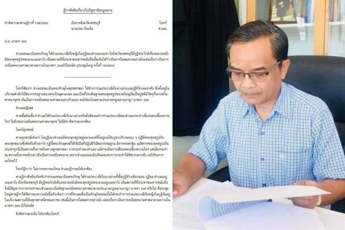 -ความจริงการพยายามลงโทษภิกษุผู้เสพเมถุน ได้มีการคิดกันมานานแล้ว กล่าวคือ พนักงานอัยการจังหวัดเพชรบุรี เคยฟ้องภิกษุผู้เสพเมถุน ด้วยเหตุผลว่า ถือว่าเป็นการเหยียดหยามศาสนา แต่ศาลฎีกาพิพากษายกฟ้อง ตามคำพิพากษาศาลฎีกาที่ 736/2505(ประชุมใหญ่) ด้วยเหตุที่ยังไม่มีกฎหมายบัญญัติไว้ จึงยังไม่เป็นความผิด เห็นได้ว่า การพยายามคุ้มครองพุทธศาสนาด้วยการลงโทษภิกษุผู้เสพเมถุนมีมานานแล้ว แต่ยังไม่มีกฎหมายบังคับจึงลงโทษไม่ได้
