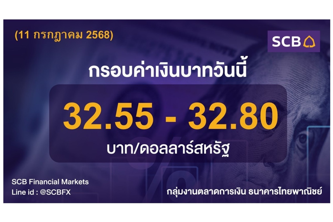 -กลุ่มงานตลาดการเงิน ธนาคารไทยพาณิชย์ ประเมินค่าเงินบาทวันนี้เคลื่อนไหวในกรอบ 32.55-32.80บาท/ดอลลาร์