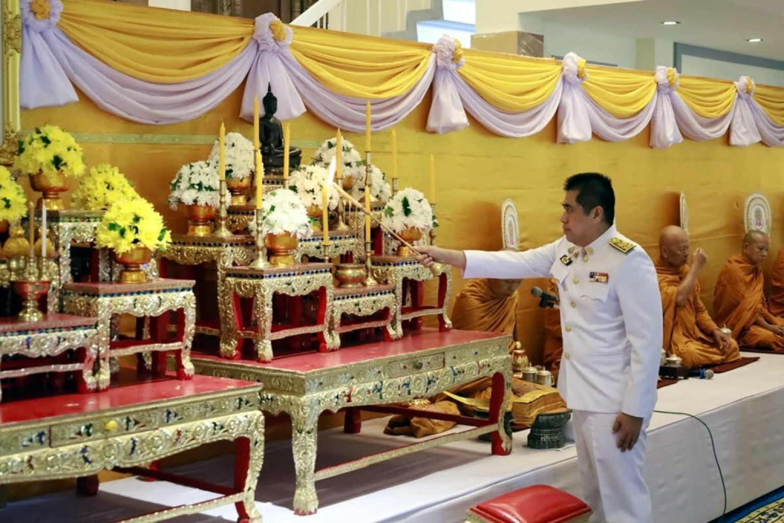 วันที่ 11 ก.ค.68 ที่ศูนย์อารยธรรม 3 แผ่นดิน ห้องโถงชั้นล่าง ศาลากลางจังหวัดศรีสะเกษ นายอนุพงศ์ สุขสมนิตย์ ผู้ว่าราชการจังหวัดศรีสะเกษ เป็นประธานประกอบพิธีจุดธูปเทียนบูชาพระรัตนตรัย และ จุดเทียนถวายราชสักการะเบื้องหน้าพระบรมสาทิสลักษณ์ สมเด็จพระนารายณ์มหาราช โดยมีนางสาวชนมณัฐ รอดบุญธรรม นายสุริยา บุตรจินดา รองผู้ว่าราชการจังหวัดศรีสะเกษ นายสุกิจ เหลืองสกุลไทย ปลัดจังหวัดศรีสะเกษ พร้อมด้วย ตุลาการ อัยการ ทหาร ตำรวจ หัวหน้าส่วนราชการ ข้าราชการ คณะกรรมการเหล่ากาชาด และ ภาคีเครือข่ายภาคเอกชนเข้าร่วมพิธีอย่างพร้อมเพรียง โดยมีพระวินัยเมธี เจ้าคณะจังหวัดศรีสะเกษ (ธ) เป็นประธานฝ่ายสงฆ์