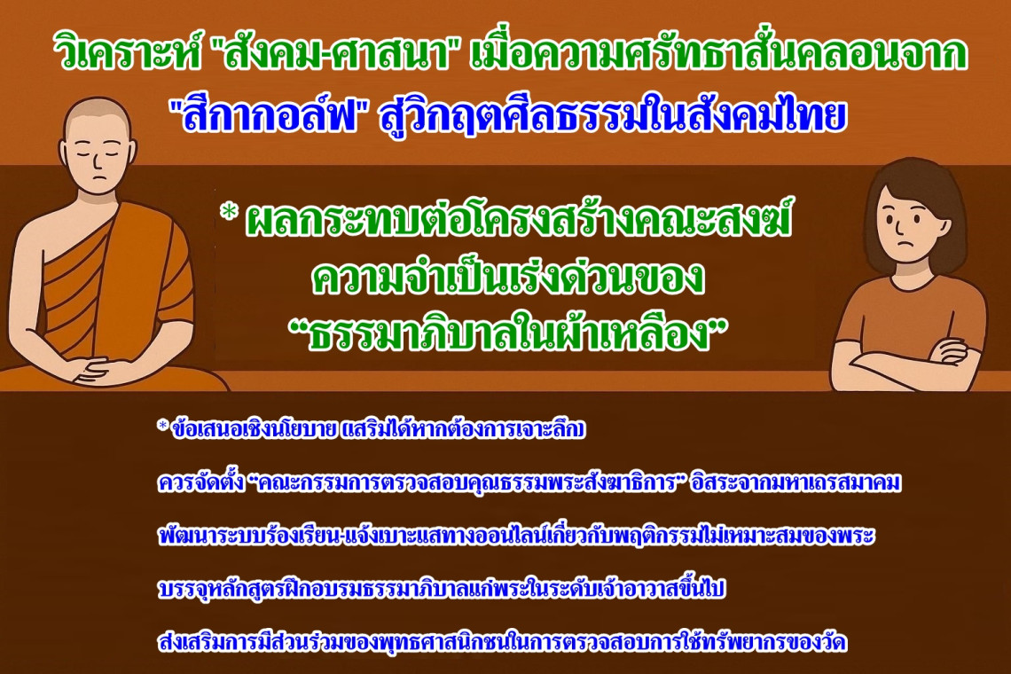 การพัวพันของพระชั้นผู้ใหญ่หลายรูปในกรณี “สีกากอล์ฟ” เป็นสัญญาณเตือนอันตรายที่สะท้อนถึง ปัญหาเชิงโครงสร้าง ภายในคณะสงฆ์ไทย โดยเฉพาะในประเด็น “ธรรมาภิบาล” หรือการบริหารกิจการสงฆ์อย่างโปร่งใส ตรวจสอบได้ และรับผิดชอบต่อสาธารณะ