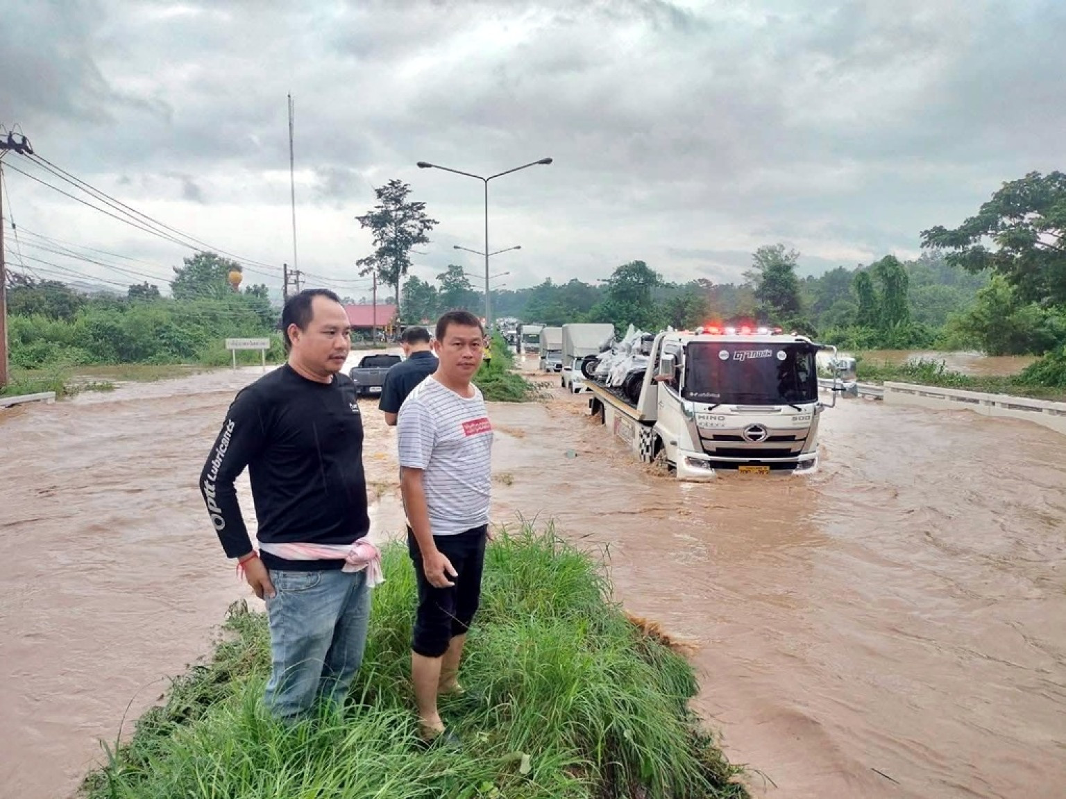 เมื่อเวลา 06.40 น. วันที่ 11 ก.ค.68 ผู้สื่อข่าวรายงานว่า จังหวัดน่าน เกิดฝนตกหนักในหลายพื้นที่ โดยเฉพาะที่อำเภอเวียงสา ห้องปฏิบัติการเฝ้าระวังและเตือนภัยน้ำหลาก-ดินถล่ม กองวิจัย พัฒนาและอุทกวิทยา (กวพ.) กรมทรัพยากรน้ำ (ทน.) กระทรวงทรัพยากรธรรมชาติและสิ่งแวดล้อม เตือนภัยวิกฤติ (สีแดง) ในหลายตำบล โดยที่บ้านหาดไร่ ตำบลน้ำมวบ อำเภอเวียงสา จังหวัดน่าน มีปริมาณฝนสะสมสูง 217.0 มิลลิเมตร ใน 12 ชั่วโมง ส่งผลให้เกิดน้ำป่าไหลหลาก ทะลักเข้าท่วมถนน น่าน-สา-แพร่ บริเวณหน้า หน่วยบริการประชาชนตำรวจทางหลวง สูงมากกว่า 50 เซนติเมตร รถทุกชนิดไม่สามารถสัญจรได้ ต้องจอดข้างถนนรอน้ำลดระดับ เป็นแถวยาวทั้งขาเข้าและขาออก และน้ำยังได้ทะลักอย่างรวดเร็วเข้าท่วมที่บ้านน้ำมวบ ต.น้ำมวบ อ.เวียงสา ระดับสูงมากกว่า 50 เซนติเมตร ถึง 1 เมตร ชาวบ้านเร่งเก็บข้าวของ ขึ้นชั้น 2 ของบ้าน