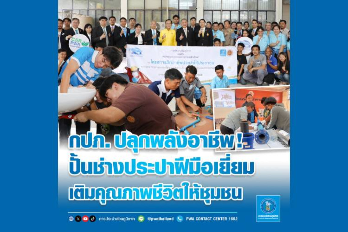 การประปาส่วนภูมิภาค (กปภ.) เผยผลการดำเนินงานโครงการฝึกอาชีพประปาให้ประชาชน ปี 2568 ซึ่งได้ดำเนินงานตามเป้าหมายในการพัฒนาทักษะวิชาชีพและสร้างโอกาสทางอาชีพช่างประปาให้กับประชาชน 13 จังหวัดในพื้นที่รับผิดชอบของ กปภ. โดยมีผู้ผ่านการฝึกอบรมจำนวนทั้งสิ้น 379 คน ถือเป็นการสร้างช่างประปาคุณภาพในการดูแลระบบประปาในชุมชนและยกระดับคุณภาพชีวิตของประชาชน