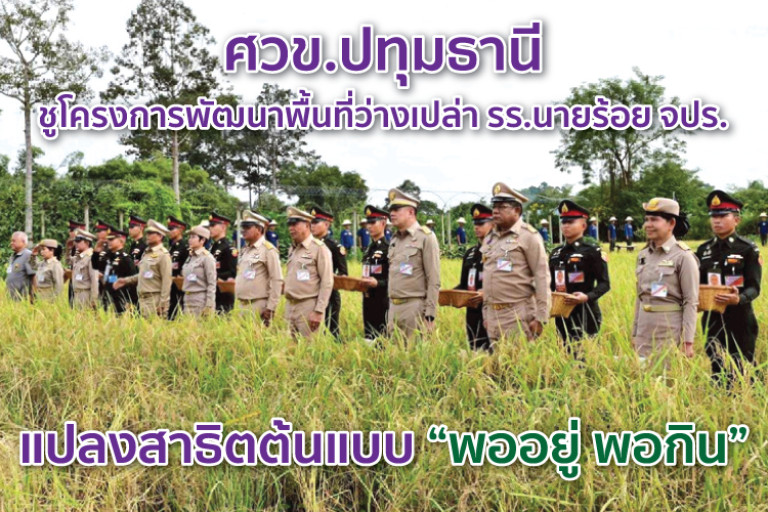 ศูนย์วิจัยข้าวปทุมธานี กรมการข้าว ได้รับสนองพระราชดำริ ดำเนินโครงการพัฒนาพื้นที่ว่างเปล่าอันเนื่องมาจากพระราชดำริ รร.นายร้อย จปร. ตามหลักเศรษฐกิจพอเพียงเพื่อพัฒนาพื้นที่ให้เป็นแปลงนาสาธิตสำหรับนักเรียน เยาวชน และประชาชนทั่วไป โดยเน้นการเผยแพร่เทคโนโลยีการผลิตข้าวที่ได้จากการวิจัยและพัฒนา เช่น พันธุ์ข้าวใหม่และวิธีการเพาะปลูกที่เหมาะสม เพื่อให้ผู้ที่สนใจสามารถเรียนรู้และนำไปปฏิบัติได้จริง