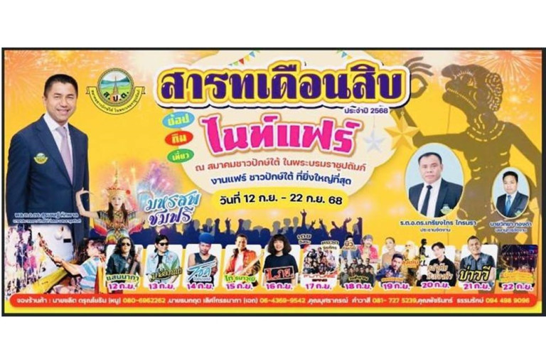 บิ๊กโจ๊ก นายกสมาคมชาวปักษ์ใต้ในพระบรมราชูปถัมภ์ จัดงานสารทเดือนสิบ ไนท์แฟร๋ สุดอลังการประจำปี ที่รวมเอาร้านเด็ดร้านดังของคนใต้ มารวบรวมเอาไว้ในงานเดียว ซึ่งงานสารทเดือนสิบ ไนท์แฟร์ครั้งนี้จัดขึ้นระหว่างวันที่ 12-22 ก.ย.68 ที่สมาคมปักษ์ใต้ในพระบรมราชูปถัมภ์