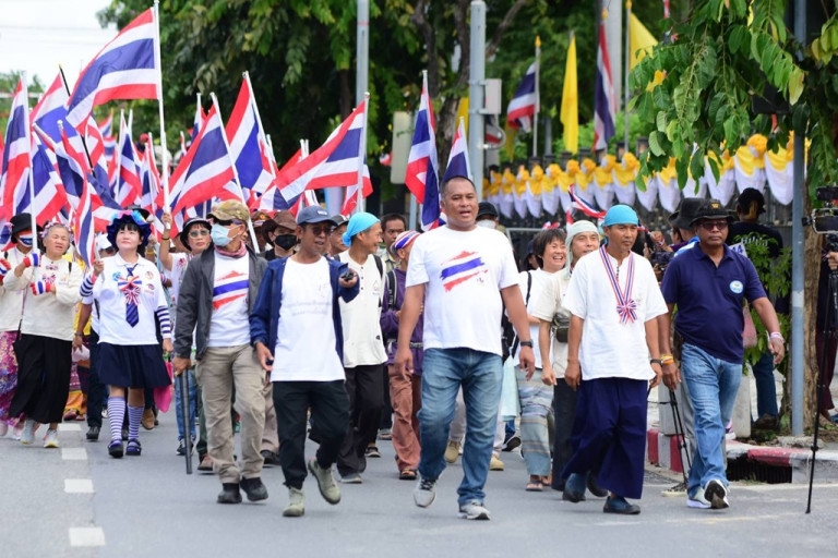 วันที่ 18 ก.ค.68 นายพิชิต ไชยมงคล แกนนำเครือข่ายนักศึกษาประชาชนปฏิรูปประเทศไทย (คปท.) พร้อมด้วยมวลชนของ คปท. กลุ่มศูนย์รวมประชาชนปกป้องสถาบัน (ศปปส.) กองทัพธรรม ร่วมกับพี่น้องประชาชนที่ห่วงใยบ้านเมือง เดินขบวนจากที่ชุมนุมสะพานชมัยมรุเชษฐ์ไปยังกระทรวงต่างประเทศ ขอให้รัฐบาลไทยให้ประท้วงรัฐบาลกัมพูชาอย่างเป็นทางการ หลังจากเกิดเหตุการณ์ทหารไทยเหยียบกับระเบิดบริเวณเนิน 481 ในพื้นที่ช่องบก จ.อุบลราชธานี เมื่อวันที่ 16 ก.ค. 2568 ที่ผ่านมา