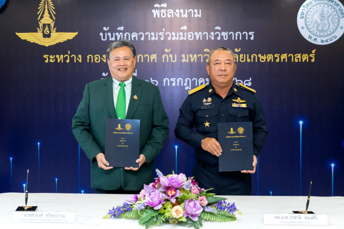 ดร.ดำรงค์ ศรีพระราม รักษาการแทนอธิการบดีมหาวิทยาลัยเกษตรศาสตร์ ร่วมลงนามในบันทึกความร่วมมือทางวิชาการ กับ พลอากาศโท วรชาติ ทองศิริ เจ้ากรมยุทธศึกษาทหารอากาศ กองทัพอากาศ ซึ่งความร่วมมือครั้งนี้ มีเป้าหมายเพื่อพัฒนาศักยภาพด้านการสื่อสารภาษาจีนของข้าราชการกองทัพอากาศให้พร้อมรองรับภารกิจด้านการแลกเปลี่ยน การเยือนประเทศพันธมิตร และการหารือความร่วมมือต่างประเทศ พร้อมทั้งส่งเสริมการพัฒนาครูผู้สอนภาษาจีนของกองทัพอากาศให้มีความเชี่ยวชาญในการจัดการเรียนการสอนอย่างมีประสิทธิภาพ โดยมีสถาบันขงจื๊อ มหาวิทยาลัยเกษตรศาสตร์ เป็นผู้ดำเนินการให้ความรู้ด้านภาษาและวัฒนธรรมจีน
