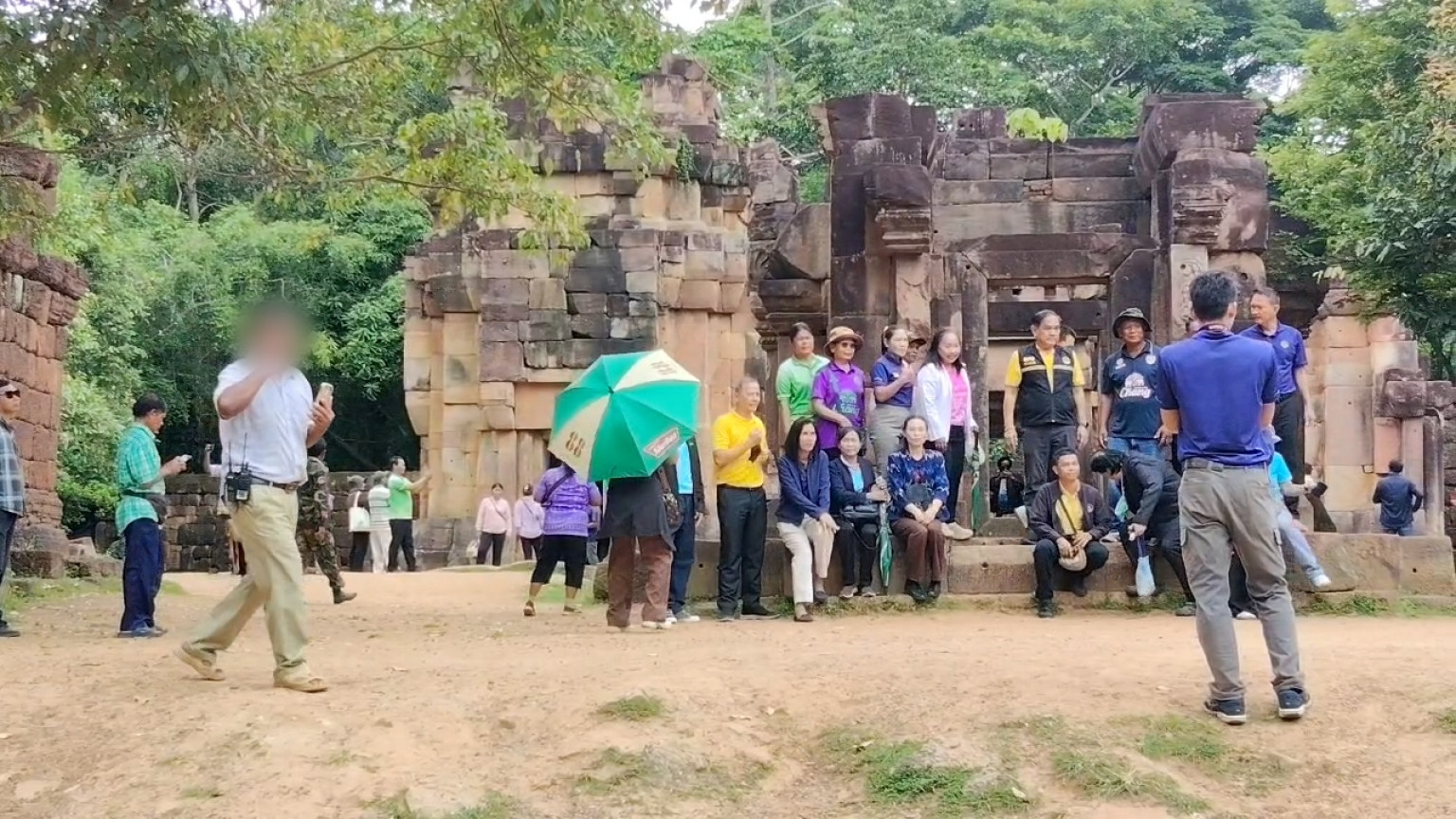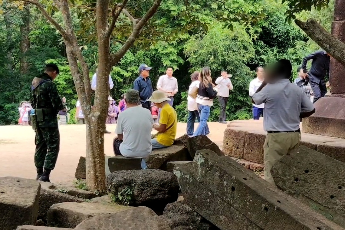 วันที่ 18 ก.ค.68 ผู้สื่อข่าวรายงานถึงบรรยากาศที่ปราสาทตาเมือนธม ต.ตาเมียง อ.พนมดงรัก จ.สุรินทร์ ตลอดทั้งวันพบว่า มีประชาชน นทท.ชาวไทยเดินทางไปมอบสิ่งของให้ทหารและเดินชมตัวปราสาทตาเมือนธมอย่างคึกคัก โดยเฉพาะกลุ่มผู้สูงอายุวัยเกษียณราชการ จาก จ.บุรีรัมย์ที่เดินทางกันมากับรถทัวร์ 2 คัน ต่างพากันถ่ายรูปกับ จนท.ทหารไทยอย่างอบอุ่น ขณะที่ชาวกัมพูชาเข้ามาบางตา และไม่พบว่ามีการสร้างสถานการณ์ โดยพบยอดจำนวน นทท.ชาวไทยเข้ามาเที่ยววันนี้ จำนวน 1,200 คน กัมพูชา จำนวน 388 คน