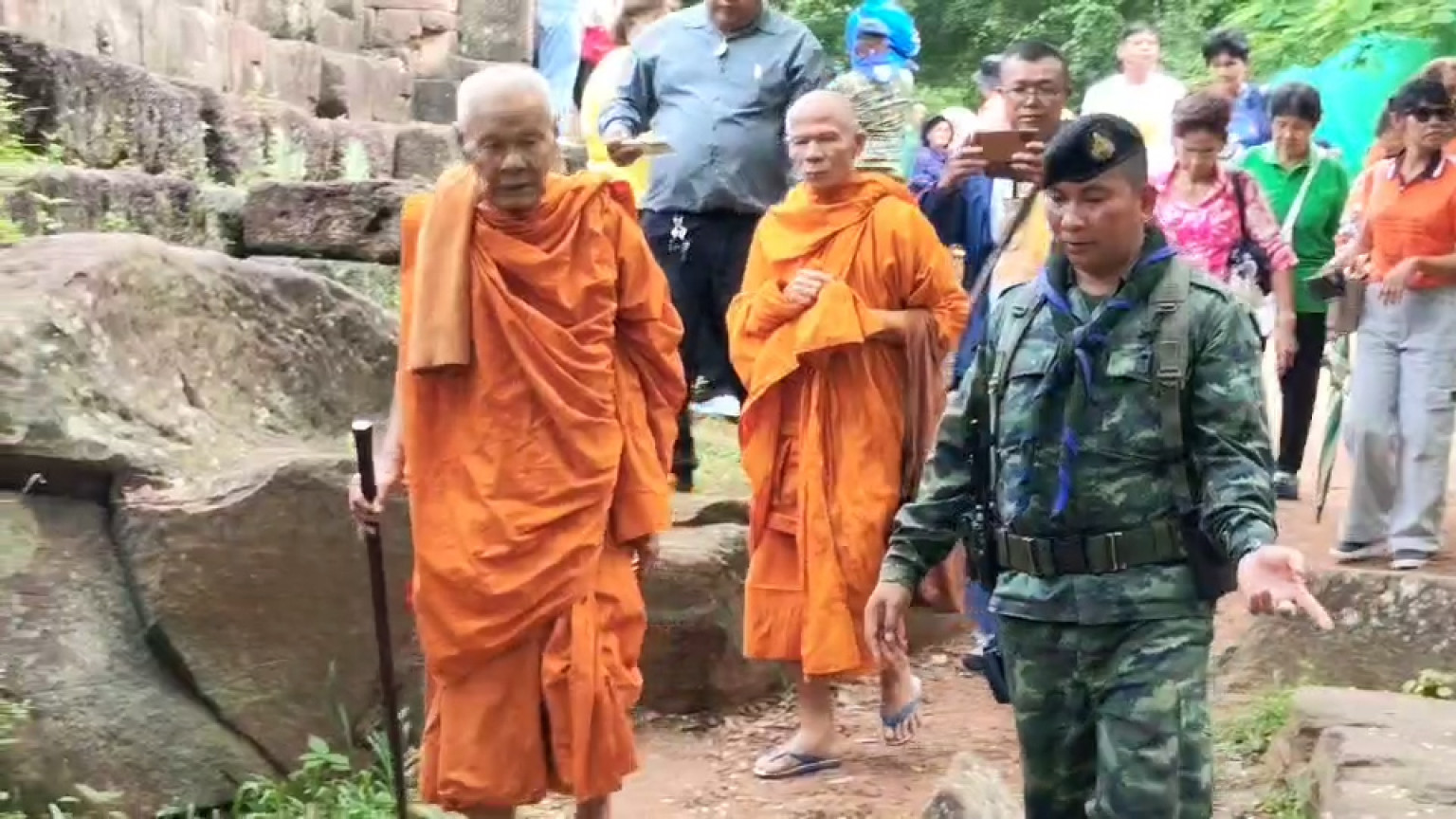 สุรินทร์ คณะคนไทยรักชาติ จ.จันทบุรี รถทัวร์ 4 คัน รถตู้ 5 คัน กว่า 300 คน บุกตาเมือนธมแต่เข้า มอบของให้ทหารและเดินชมปราสาท สังเกตุุชาวกัมพูชา รวมตัวขึ้นมา จนท.เตรียมกำลัง วางแผนดูแลหวั่นปะทะกัน ทหารจัดระเบียบชาวกัมพูชาเข้ามาครั้งละ 100 คน ชุดละ 30 นาที