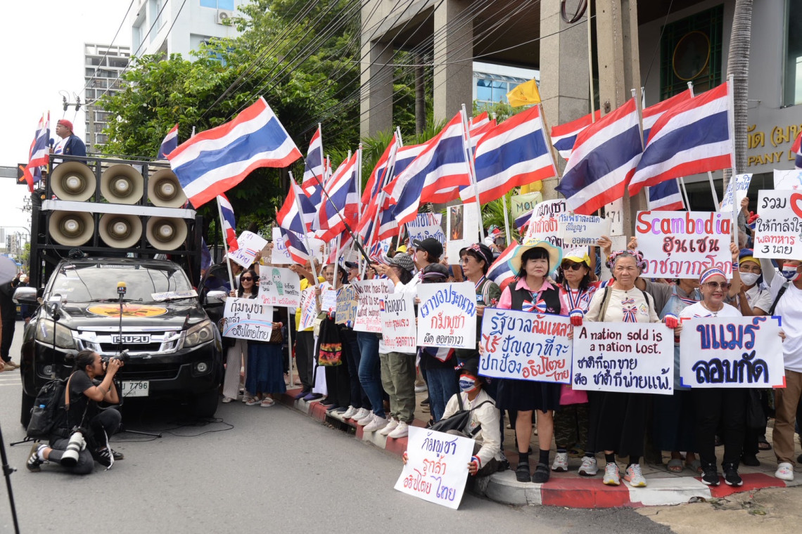 คปท. ชุมนุมประท้วงหน้าสถานทูตกัมพูชา เหตุทหารลอบวางทุ่นระเบิดในเขตแดนไทย