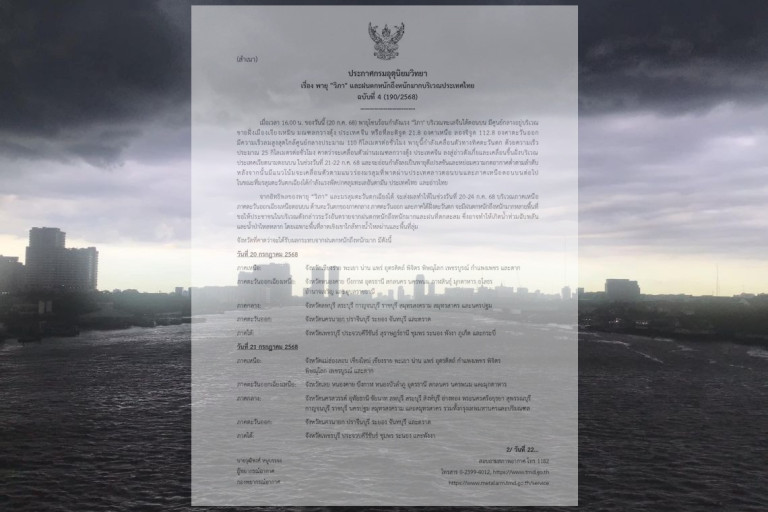 กรมอุตุนิยมวิทยาจะออกประกาศฉบับต่อไปในวันที่ 20 กรกฎาคม พ.ศ. 2568 เวลา 23.00 น.