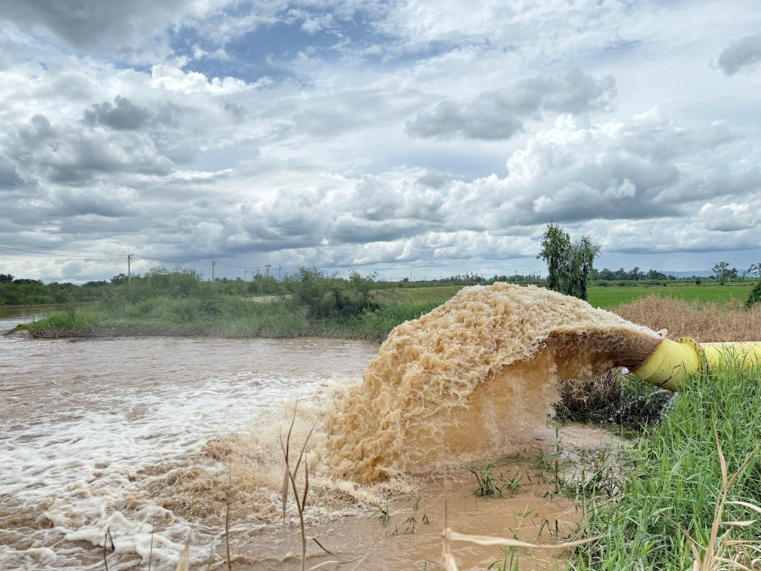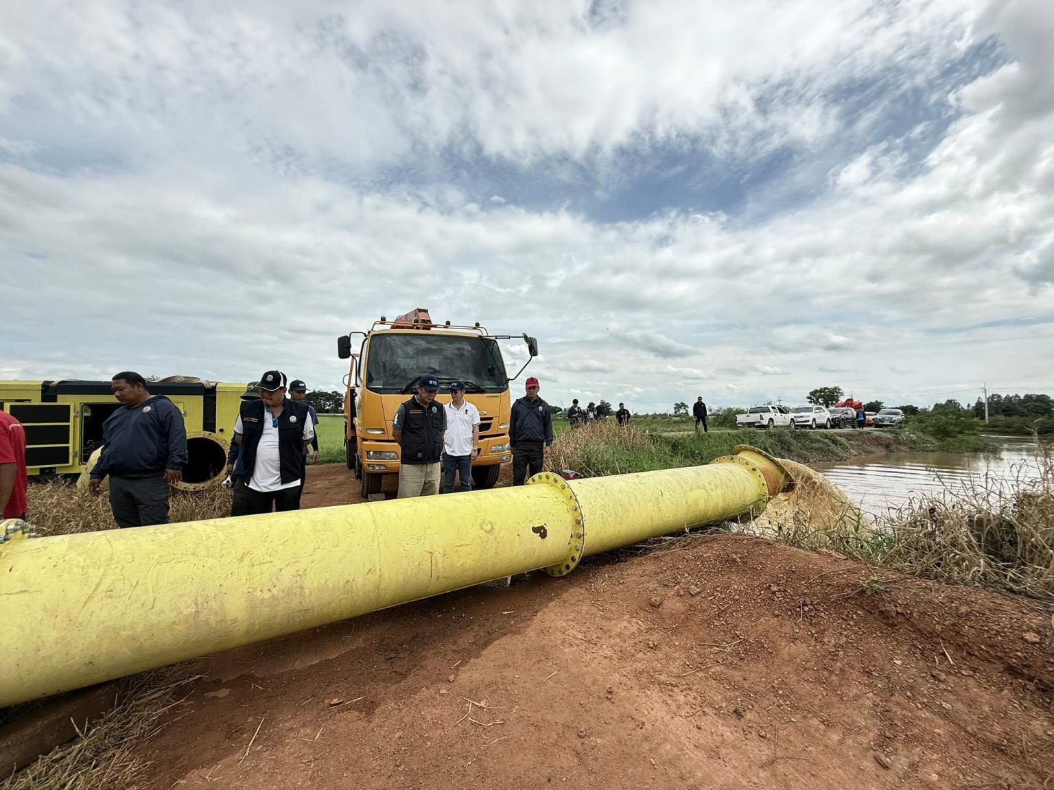 โดยมีรายละเอียดการติดตั้งเครื่องสูบน้ำ ได้แก่ เครื่องสูบน้ำขนาด 24 นิ้ว จำนวน 1 เครื่อง (โดยส่วนเครื่องจักรกล สำนักงานชลประทานที่ 4) , เครื่องสูบน้ำขนาด 32 นิ้ว จำนวน 1 เครื่อง (สนับสนุนโดยสำนักเครื่องจักรกล), เครื่องสูบน้ำขนาด 42 นิ้ว จำนวน 1 เครื่อง (สนับสนุนโดยสำนักเครื่องจักรกล)