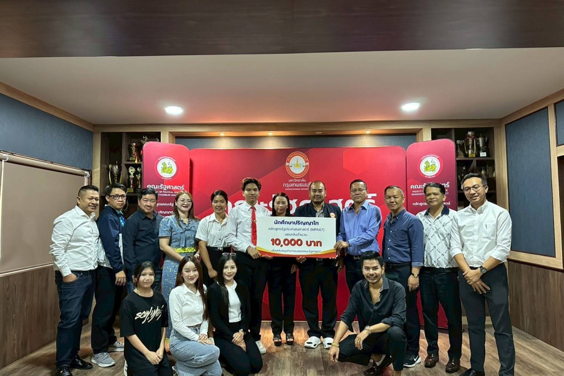 เมื่อวันที่ 19 กรกฎาคม 2568 เวลา 14.00 น. ณ มหาวิทยาลัยกรุงเทพธนบุรี (มกธ.) คณะผู้บริหารและนักศึกษาคณะรัฐศาสตร์ นำโดย รศ.ดร.กมลพร กัลยาณมิตร คณบดีคณะรัฐศาสตร์ ร่วมด้วย รศ.ดร.ณัฐวัฒน์ สิริพรวุฒิ อ.ดร.ธนพันธุ์ พูลชอบ อ.ดร.พิมพ์กมล เกตุแก้ว ให้การต้อนรับคณะนักศึกษารัฐศาสตร์ ปริญญาโท (มกธ.) MPA67 ในโอกาสเข้ามอบเงินสนับสนุนกิจกรรมของคณะรัฐศาสตร์