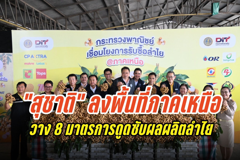 “สุชาติ” ลงพื้นที่เชียงใหม่-ลำพูน วาง 8 มาตรการดูดซับผลผลิตลำไย แก้ราคาตกต่ำ ยันไม่ปล่อยเกษตรกรแบกรับต้นทุนลำพัง