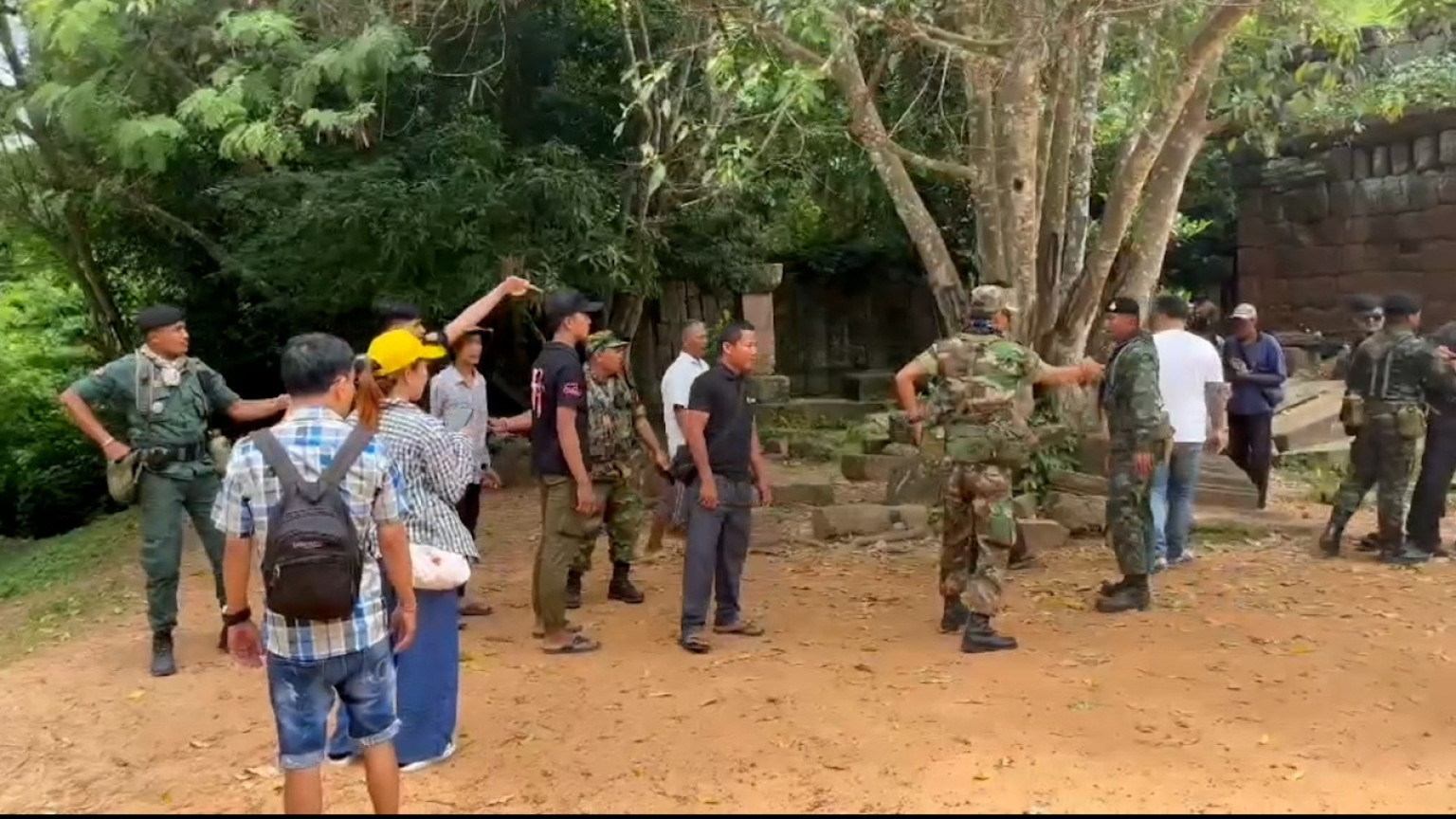 จากนั้นทหารตัวตึงคนดังกล่าว ได้พา นทท.ชาวกัมพูชาขึ้นมาเที่ยวและยืนสังเกตุการณ์อยู่ในตัวปราสาท ต่างจากเมื่อวานนี้ไม่กล้าเข้ามาแต่อย่างใด เนื่องจาก นทท.ชาวไทยเข้ามาเป็นจำนวนมาก