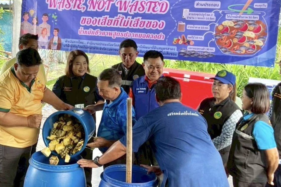 ประมงสมุทรสาคร จับมือร่วมกับสำนักงานพัฒนาที่ดิน และซีพีเอฟ เปิดตัว น้ำหมักชีวภาพสูตรปลาหมอคางดำ ตั้งเป้าช่วยลดจำนวนปลาหมอคางดำเดือนละ 6,000 กิโลกรัม พร้อมแบ่งปันสูตรให้วิสาหกิจชุมชน ต่อยอดเป็นสินค้าสร้างรายได้ แบรนด์ Waste, Not Wasted ของเสียที่ไม่เสียของ ช่วยเกษตรกรประหยัดค่าปุ๋ยได้ถึงหมื่นบาทต่อไร่ เกษตรกรย้ำน้ำหมักชีวภาพช่วยให้ฝรั่งลูกโตขึ้น และมีรสหวาน