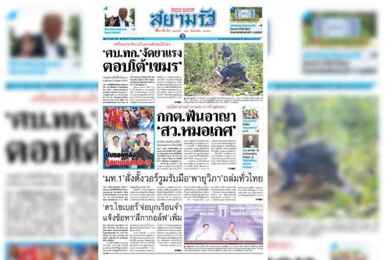 หน้า 1 หนังสือพิมพ์สยามรัฐรายวัน ฉบับวันอังคารที่ 22 กรกฎาคม 2568