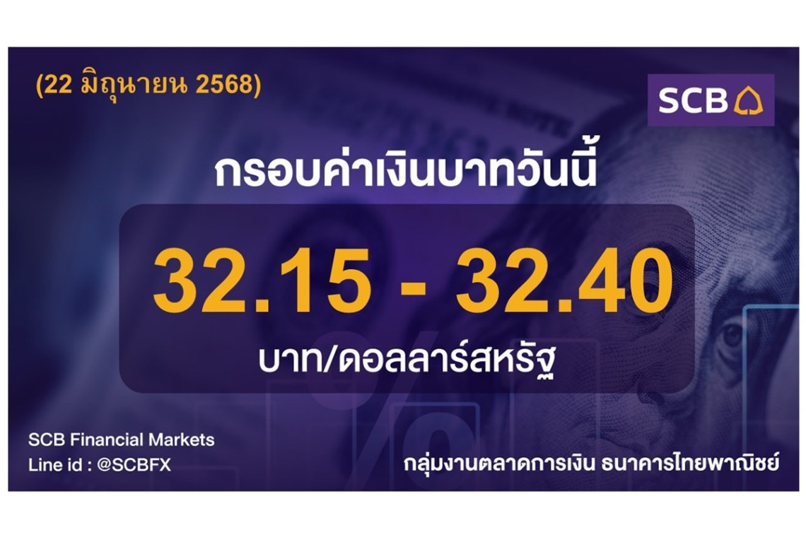 -กลุ่มงานตลาดการเงิน ธนาคารไทยพาณิชย์ ประเมินค่าเงินบาทวันนี้เคลื่อนไหวในกรอบ 32.15-32.40 บาท/ดอลลาร์