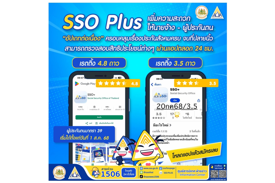 สอบถามข้อมูลเพิ่มเติมได้ที่ www.sso.go.th หรือสายด่วน 1506 ตลอด 24 ชั่วโมง