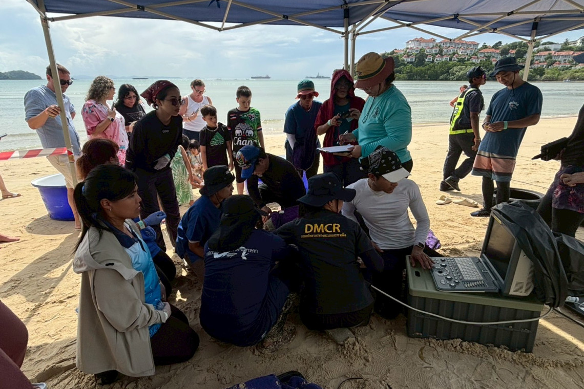 ผู้สื่อข่าวรายงานว่า วันที่ 20-21 กรกฎาคม 2568 กรมทรัพยากรทางทะเลและชายฝั่ง โดยเจ้าหน้าที่ศูนย์วิจัยทรัพยากรทางทะเลและชายฝั่งทะเลอันดามันตอนบน ร่วมกับศูนย์อนุรักษ์อุทยานใต้ทะเลจุฬาภรณ์ คณะสัตวแพทยศาสตร์ มหาวิทยาลัยมหิดล มหาวิทยาลัยเทคโนโลยีราชมงคลศรีวิชัย วิทยาเขตนครศรีธรรมราช อาสาสมัครนักวิทยาศาสตร์พลเมือง และโรงแรมพูลแมน ภูเก็ต พันวา บีชรีสอร์ท จำนวน 30 คน ร่วมกันตรวจสุขภาพเต่าทะเลในถิ่นที่อยู่อาศัย ณ อ่าวตังเขน อ.เมือง จ.ภูเก็ต
