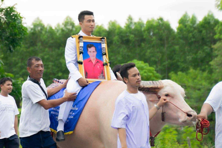กำนันอนุชา และผู้ใหญ่วัชระยังเผยต่ออีกว่า คุณปู่ชื่นชอบการเลี้ยงกระบือเอาไว้ใช้งาน และยังเลี้ยงเอาไว้แข่งคราด แข่งวิ่งเร็วอีก ชอบพาพวกตนไปแข่งในที่ต่าง ๆ เช่น ควายแข่งกับวัวที่เพชรบุรี ควายแข่งว่ายน้ำกับหมูที่แม่น้ำเจ้าพระยา ควายแข่งกับม้าที่ราชบุรี เพื่อสานสัมพันธ์เกิดเป็นพรรคพวก จนวันนี้ทุกคนที่ปู่เคยไปสร้างมิตรไมตรี พอทราบข่าวการเสียชีวิต ต่างก็รู้สึกเสียใจกับการจากไปของปู่ และต่างก็นำเอาวัวควาย ม้ามาร่วมขบวน