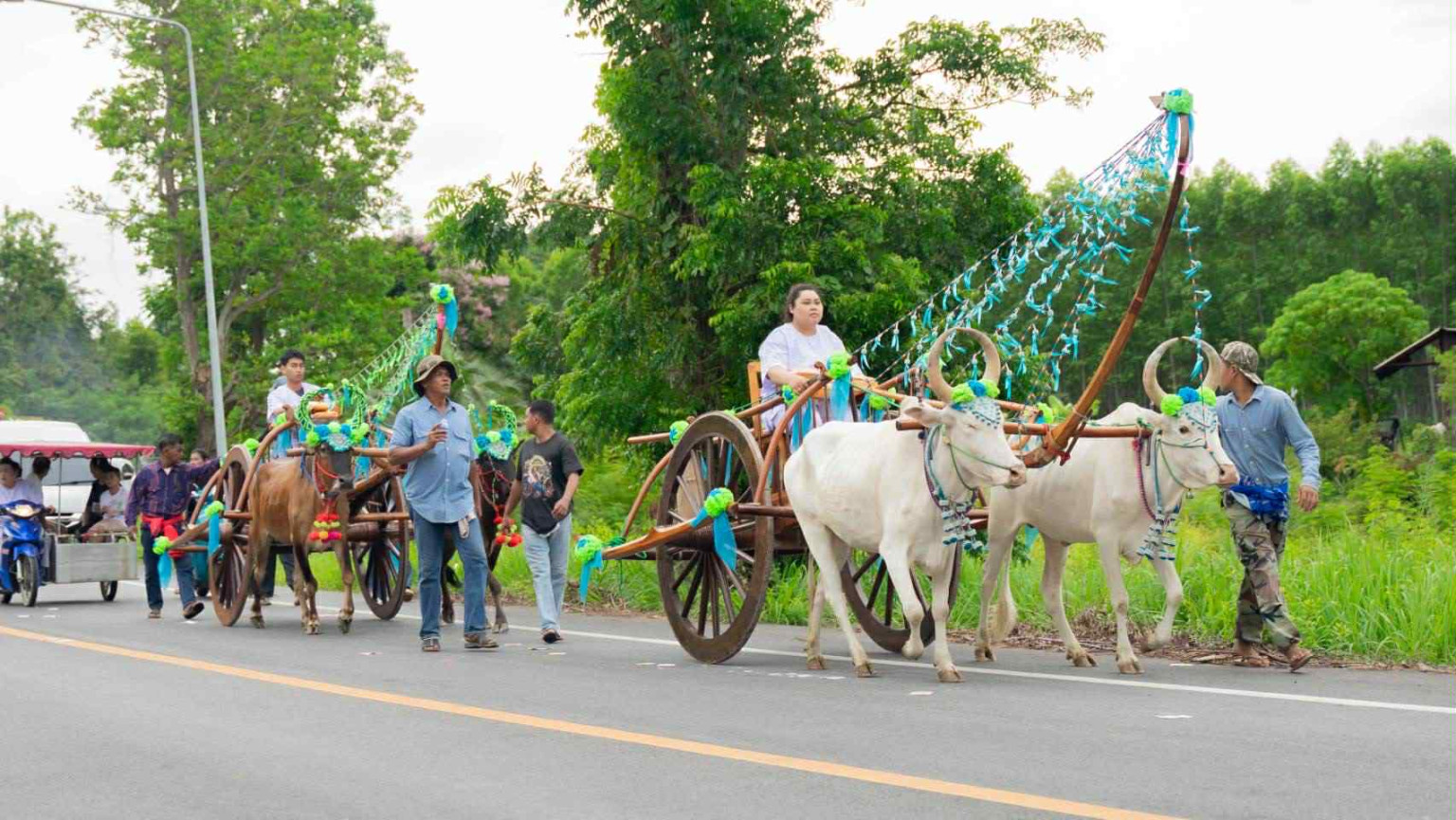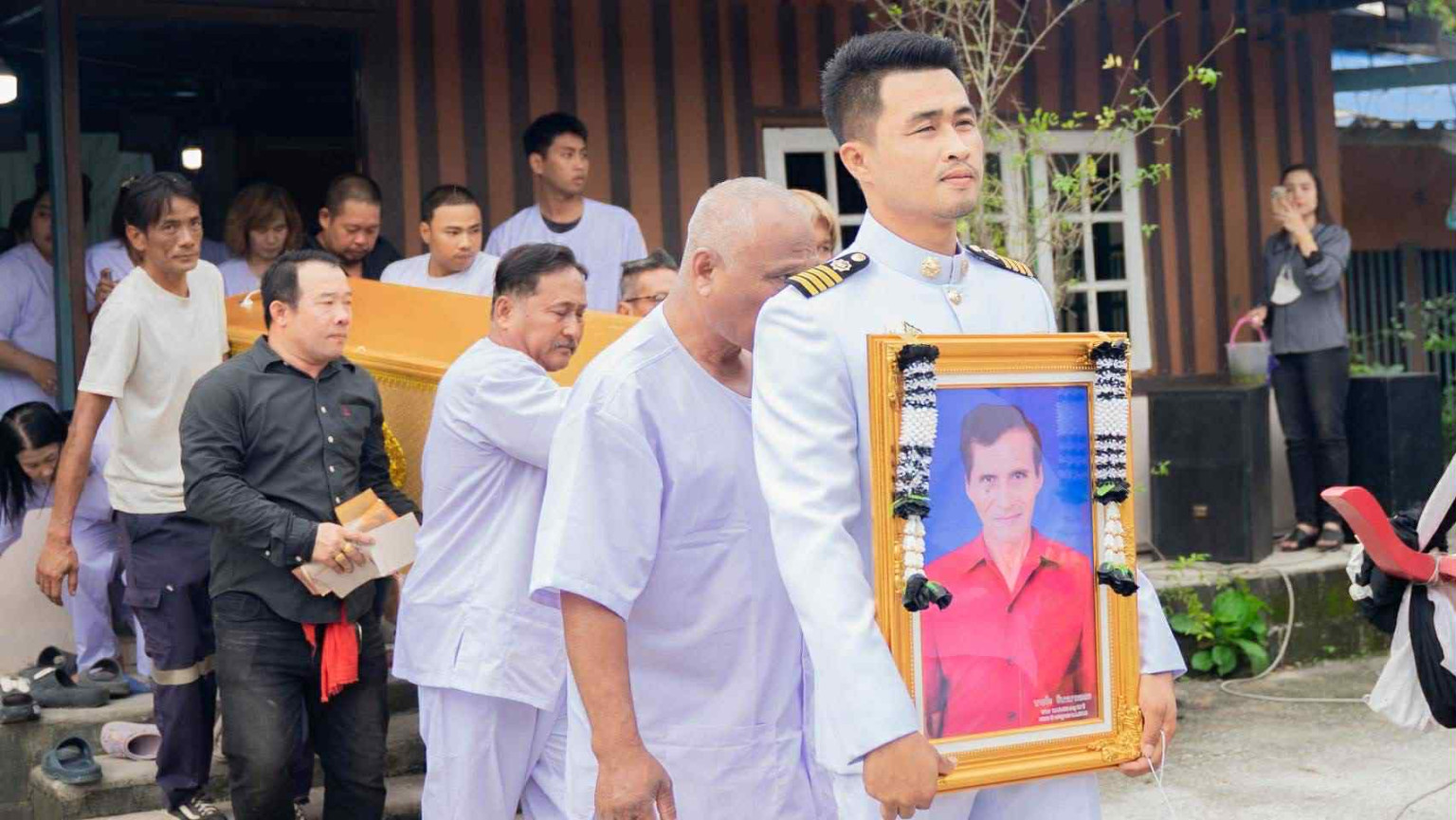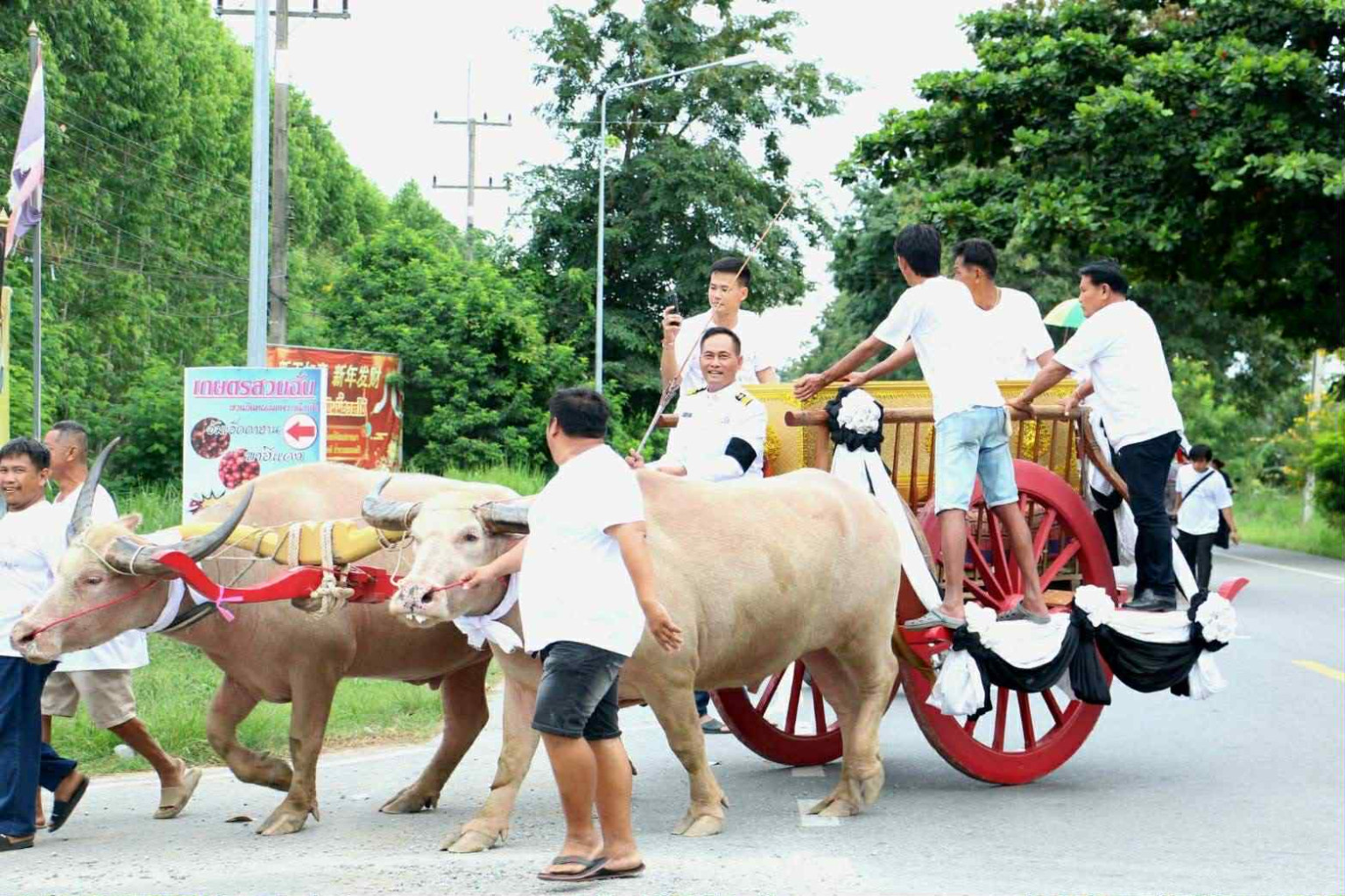 ภาพบรรยากาศขบวนเคลื่อนย้ายร่างผู้เสียชีวิตครั้งนี้ เกิดขึ้นเมื่อวันอาทติย์ที่ผ่านมา ประกอบด้วย ควายเทียมเกวียน 5 เล่ม, วัวเทียมเกวียน 2 เล่ม, ควายเทียมคราด 3 เล่ม, ม้า 1 คู่ และควายเผือกอีก 5 คู่ พร้อมกับรถบรรทุกสิบล้อขนย้ายพวงรีด 3 คัน ตั้งขบวนออกเดินทางจากบ้านเลขที่ 70/1 ม .11 ต.หมอนนาง อ.พนัสนิคม จ.ชลบุรี ขบวนมีความยาวเกือบ 500 เมตร