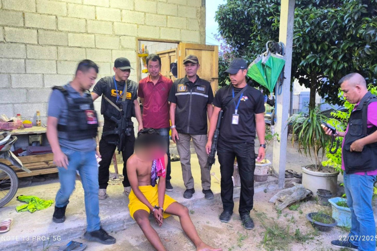 เมื่อช่วงเช้าที่ตรู่วันที่ 22 กรกฎาคม 2568 ชุดสืบสวนจับกุมจากกองกำกับการ 5 บก.ปคม. ชุดสืบสวน สภ.ท่าศาลา และสืบสวนตำรวจท่องเที่ยว กก.2บก.ทท.3 อีกหนึ่งชุดปฏิบัติการได้เข้าจู่โจม บ้านเลขที่ 75/5 หมู่ 7 ตำบลสระแก้ว อำเภอท่าศาลา หลังจากสืบทราบว่านายณรงฤทธิ์ อายุ 20 ปี หรือที่รู้จักในชื่อ เจมส์ หรือกาก ท่าขึ้น ผู้ค้ายาเสพติดรายสำคัญในท้องที่ตำบลท่าขึ้น อำเภอท่าศาลา นครศรีธรรมราช ซึ่งเป็นผู้ต้องหาตามหมายจับของศาลจังหวัดนครศรีธรรมราช จำนวน 2 หมาย ในข้อหา มียาเสพติดให้โทษประเภท 1 ไว้ในครอบครองเพื่อจำหน่าย และจำหน่ายโดยไม่ได้รับอนุญาต และ ร่วมกันครอบครองยาเสพติดประเภท 1