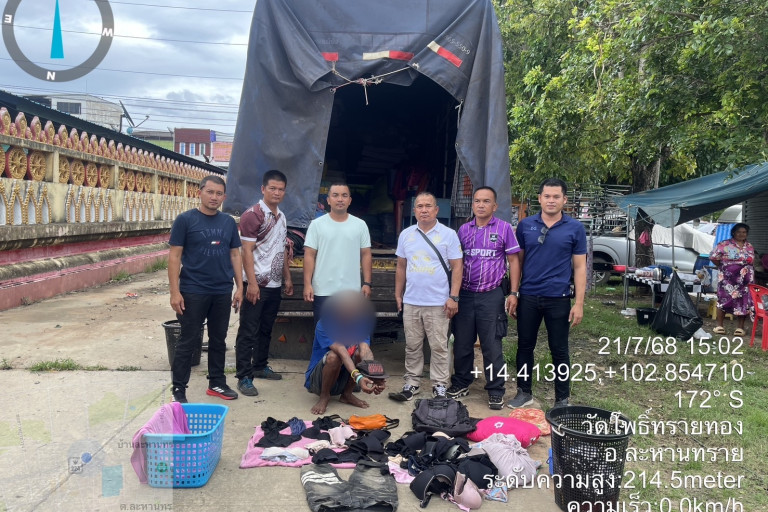 วันที่ 22 ก.ค.68 พ.ต.ท.รังสิวัฒน์ กังศรานนท์ รอง ผกก.(สืบสวน)สภ.ละหานทราย อ.ละหานทราย นำตัวนาย ขวัญ หรือเป้ อายุ 32 ปี อยู่บ้านเลขที่ 78 ม.9 ถ.ธนะชัย ต.บ้านดุง อ.บ้านดุง จ.อุดรธานี พนักงานให้บริการของเด็กเล่นชิงช้าสวรรค์ และเครื่องเล่นอื่น มาสอบสวน หลังจากเข้าไปควบคุมตัวได้ที่ห้องพัก พร้อมของกลางเป็นกางเกงในผู้หญิง 28 ตัว ยกทรงหญิง 25 ตัวและชุดนอนผู้หญิงอีก 2 ตัว รวม 54 รายการ