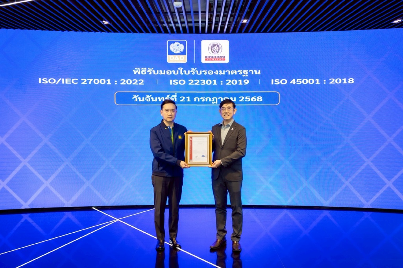 ซึ่งการได้รับการรับรองจากองค์กรระดับโลกอย่าง Bureau Veritas ซึ่งมีสำนักงานใหญ่ในประเทศฝรั่งเศสและมีเครือข่ายครอบคลุมกว่า 140 ประเทศ สะท้อนถึงความมุ่งมั่นของ DAD ในการยกระดับการบริหารจัดการองค์กรให้เป็นไปตามมาตรฐานสากล ตอบรับต่อเป้าหมายการพัฒนาอย่างยั่งยืน และเสริมความแข็งแกร่งในทุกมิติของการดำเนินงานยกระดับความมั่นคงข้อมูล-ความปลอดภัย-ความต่อเนื่องทางธุรกิจ