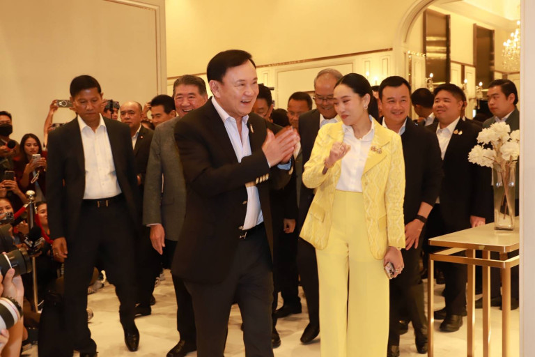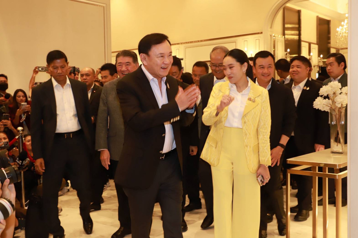 ก่อนที่เวลา 18.00น. นายทักษิณ ชินวัตร อดีตนายกรัฐมนตรีเดินทางมาถึง โดยมีน.ส.แพทองธาร นายภูมิธรรม เวชยชัย รองนายกรัฐมนตรีและรมว.มหาดไทย ในฐานะแกนนำพรรคเพื่อไทย นายสรวงศ์ เทียนทอง รมว. การท่องเที่ยวและกีฬา ในฐานะเลขาธิการพรรคเพื่อไทย นายสมศักดิ์ เทพสุทิน รมว.สาธารณสุข นายจุลพันธ์ อมรวิวัฒน์ รมช.คลัง ในฐานะรองหัวหน้าพรรคเพื่อไทย นายพงศ์กวิน จึงรุ่งเรืองกิจ รมว.แรงงาน น.ส.สุดาวรรณ หวังศุภกิจโกศล รมว.อุดมศึกษา วิทยาศาสตร์ วิจัยและนวัตกรรม (อว.) นางมนพร เจริญศรี รมช.คมนาคม นายสุรพงษ์ ปิยะโชติรมช.คมนาคม น.ส.ลิณธิภรณ์ วริณวัชรโรจน์ รมช.ศึกษาธิการ นายเผ่าภูมิ โรจนสกุล รมช.คลัง น.ส.จิราพร สินธุไพร รมต.ประจำสำนักนายกรัฐมนตรี รอต้อนรับ